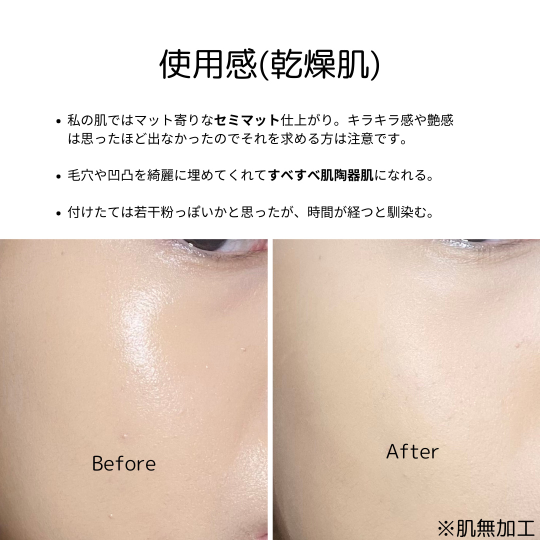 可愛すぎるクッションのパッケージを見つけて、ずっとKISS ME FELM のベース系は気になってはいたので思い切って買ってみたら、めちゃくちゃよかったので紹介します。 高いカバー力。ニキビ跡、毛穴が綺麗に隠れた。 粉質がしとさらで乾燥肌さんが好きな感じ。