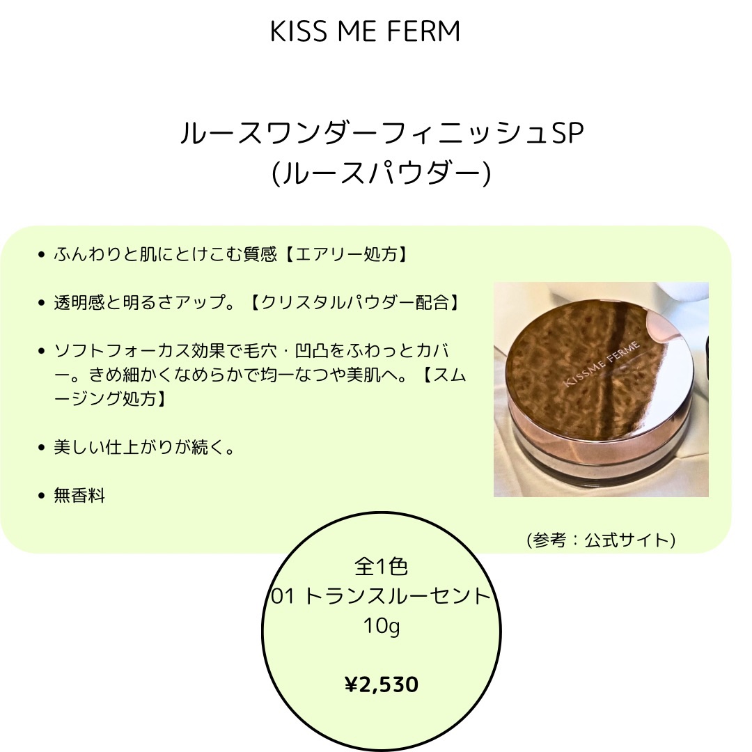 KISSMEFERMキスミーフェルム⚫️クッションワンダーラストSP(ファンデーション)<限定セット-ボタニカルデザイン->レフィル+ケース全3色[02/03/04]¥2,200⚫️ルースワンダーフィニッシュSP(ルースパウダー)全1色01トランスルーセント 10g¥2,530 たまたまこの可愛すぎるクッションのパッケージを見つけて、ずっとKISSMEFELMのベース系は気になってはいたので思い切って買ってみたら、めちゃくちゃよかったので紹介します。 ちなみに通常パケの方はレフィルとケースが別売りで揃えると3300円するのですごくお得なセットです🉐✼••┈┈••✼••┈┈••✼••┈┈••✼••┈┈••✼🍀クッションファンデ【崩れにくさ】頬は崩れにくいが目鼻口周りは乾燥皮脂崩れを感じたので避けたりブラシで薄く塗ったりすると大丈夫だった🙆【カバー力】高い。ニキビ跡、毛穴が綺麗に隠れた。【ツヤorマット】ぷるっとした水光艶肌。【良いところ】・仕上がりが綺麗。・水みたいで薄づきなのにめちゃくちゃカバー力があるところ。【イマイチなところ】・乾燥肌には良いけどもしかしたら脂性肌にはドロドロになるかもしれない。【使い方】特にカバーしたいところからトントンと塗り広げる。鼻周りは滑らせたり、ブラシでつけるとより綺麗。☘️パウダー【崩れにくさ】頬は綺麗にセミ艶のままキープしてくれる。【カバー力】カバー力は無いけど肌の凹凸や毛穴を埋めて陶器肌っぽく見せてくれる。【ツヤorマット】手に出した時は艶感ラメ感を感じたけど、顔に乗せるとマット寄り。【良いところ】粉質がしとさらで乾燥肌さんが好きな感じ。【イマイチなところ】ネットからいっぱい粉が出てくる。【使い方】頬のテカリやすいところに薄く。口周りは塗らない。鼻周りは塗らないか、ブラシで薄く薄くつける。@キスミーフェルム@KISSMEFERM#キスミーフェルム#クッションファンデ#フェイスパウダー