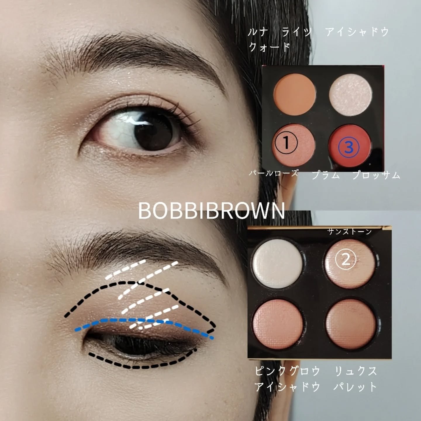 #今日のメイク今日もBOBBIBROWNでアイメイク。✔️①から④の手順でメイクしました。①上瞼キワに乗せ、ブラシでぼかします。下まぶたは目頭から中央に乗せ、ブラシでぼかします。②上瞼全体にブラシで乗せます。下まぶたは目頭から中央にブラシで乗...