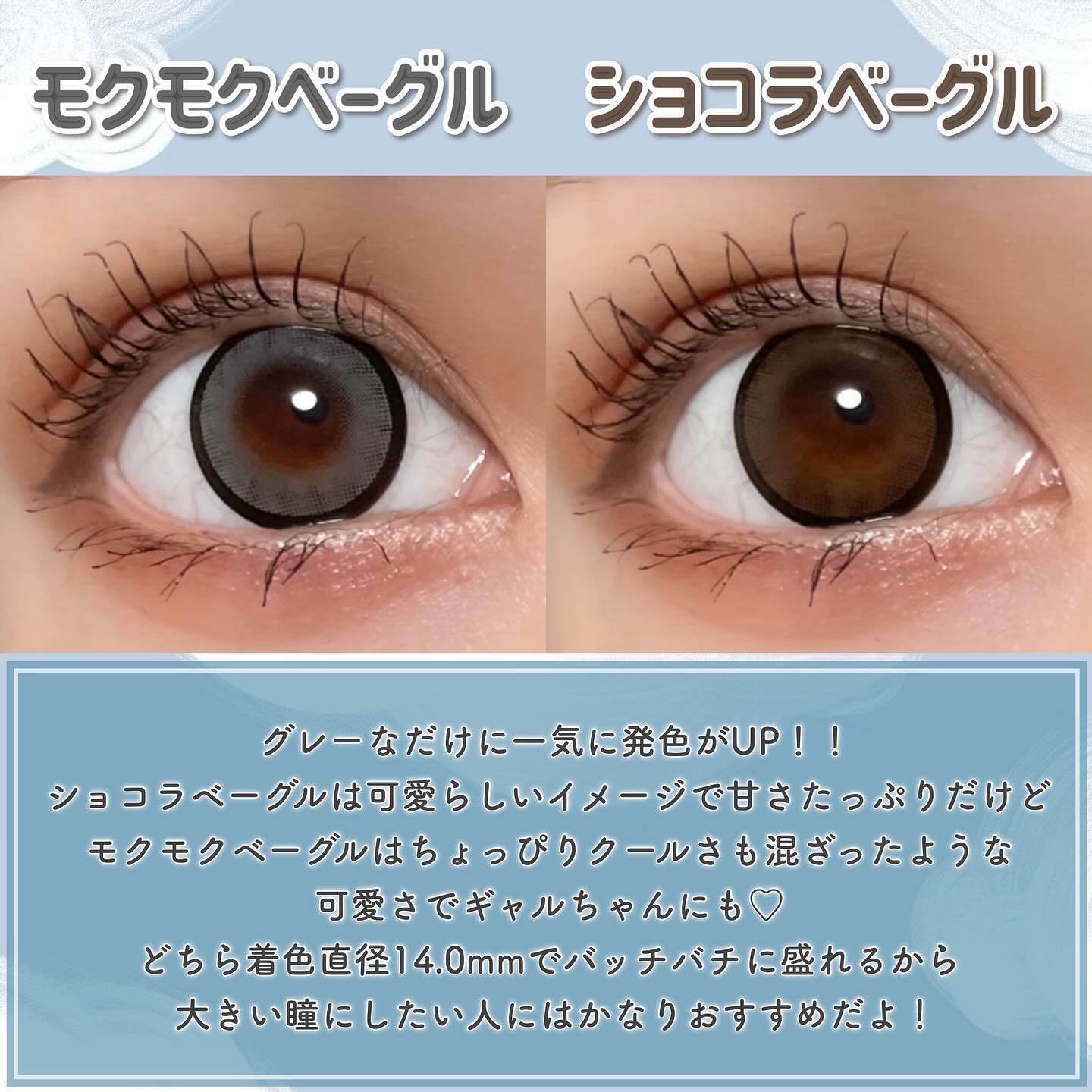 でっかく盛れるアイクローゼットからショコラベーグルの色違いが出た☁️🩶ちゅるんと爆盛れできるショコラベーグルの色違いが出たよ!!ブルベさんにピッタリすぎるグレーなのです🐰✨アイクローゼット#PR@hotel_lovers.official1DayDIA14.5mm着色直径14.0mmBC8.6mm含水率38%┈┈┈┈┈┈┈┈┈┈┈┈🆕#モクモクベーグルくっきり太フチにがっつり寒色グレーでブルベさんにピッタリカラー🩵🩶ショコラベーグルとは違って発色がかなりアップ!!黒目でも沈まないしイエベさんでも浮かない色味なの強すぎる😩✨#ショコラベーグルこっくりちゅるんダークブラウンで可愛さ爆誕💕🥺アイドルのような可愛らしい瞳になれて色味としてはナチュラルだけど大きいサイズでまじで盛れる🥴🍎どんな裸眼でも馴染むのがこのカラコンの強みだと思う🤎着色直径14.0mmで大きめカラコン大好きさんにはもってこいのカラコンだよ🫶🏻#アイクローゼット#太フチカラコン#くっきりフチカラコン#甘めカラコン#大きめカラコン#盛れカラコン#ギャルカラコン#ちゅるんカラコン#寒色カラコン#グレーカラコン#ブラウンカラコン#ブルベカラコン#イエベカラコン#ホテラバ公式画像については許可を得て使用させていただきます。