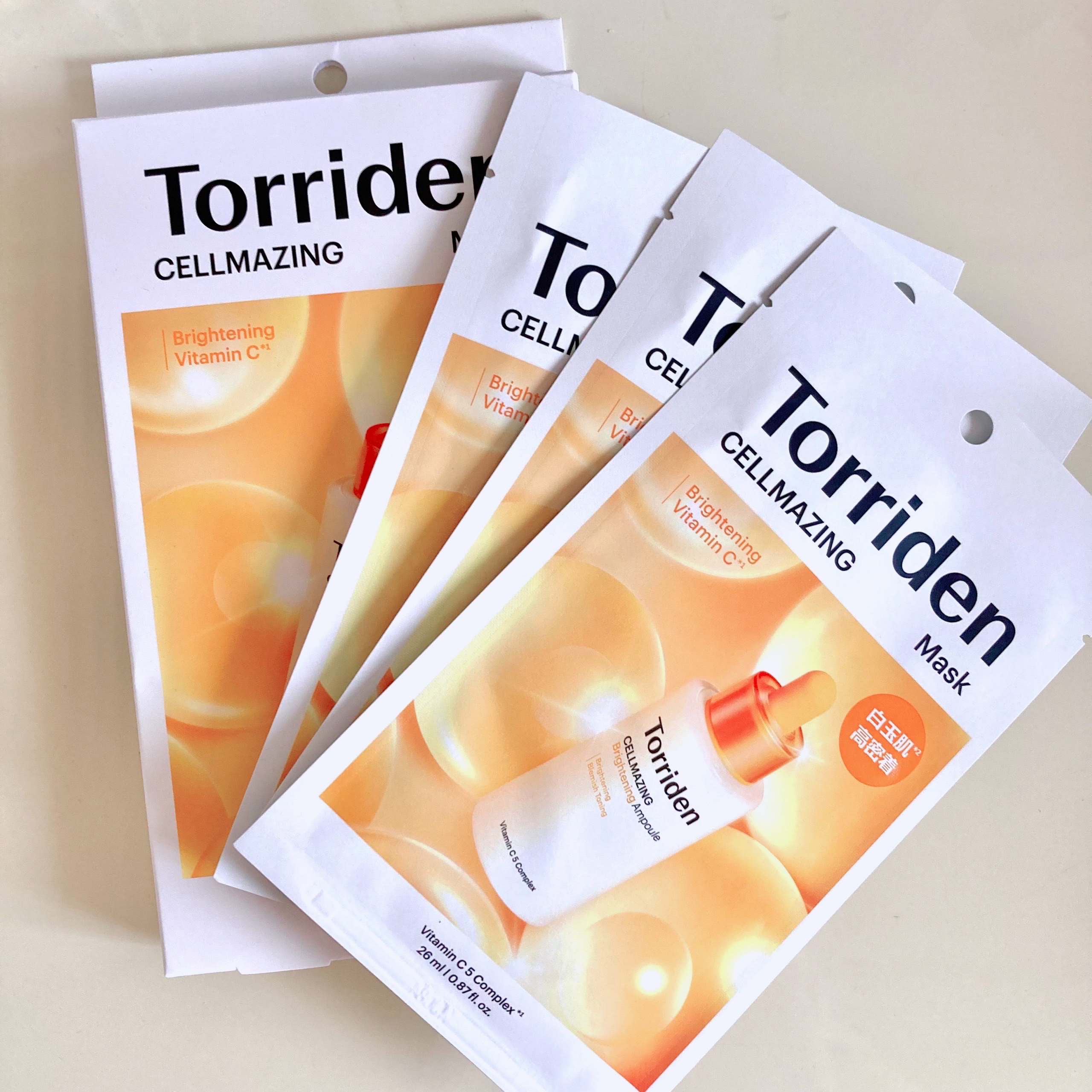 Torriden セルメイジング ビタC ブライトニングマスク✨ 純粋ビタミンCの入った贅沢なマスク💓 パーンとハリを出しつつ ツヤツヤ肌にしてくれます👏 心地よく使えているので 常に家にストック💪