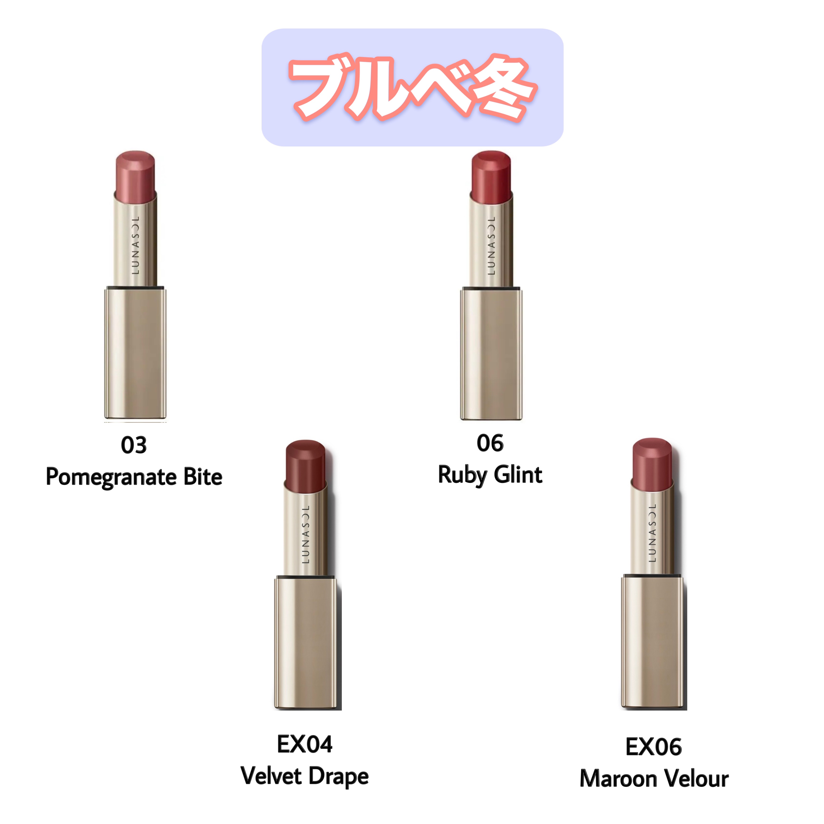 使用感・テクスチャーを動画でチェックルナソル フュージングカラーリップス EX03 Autumn Foliage(限定色)