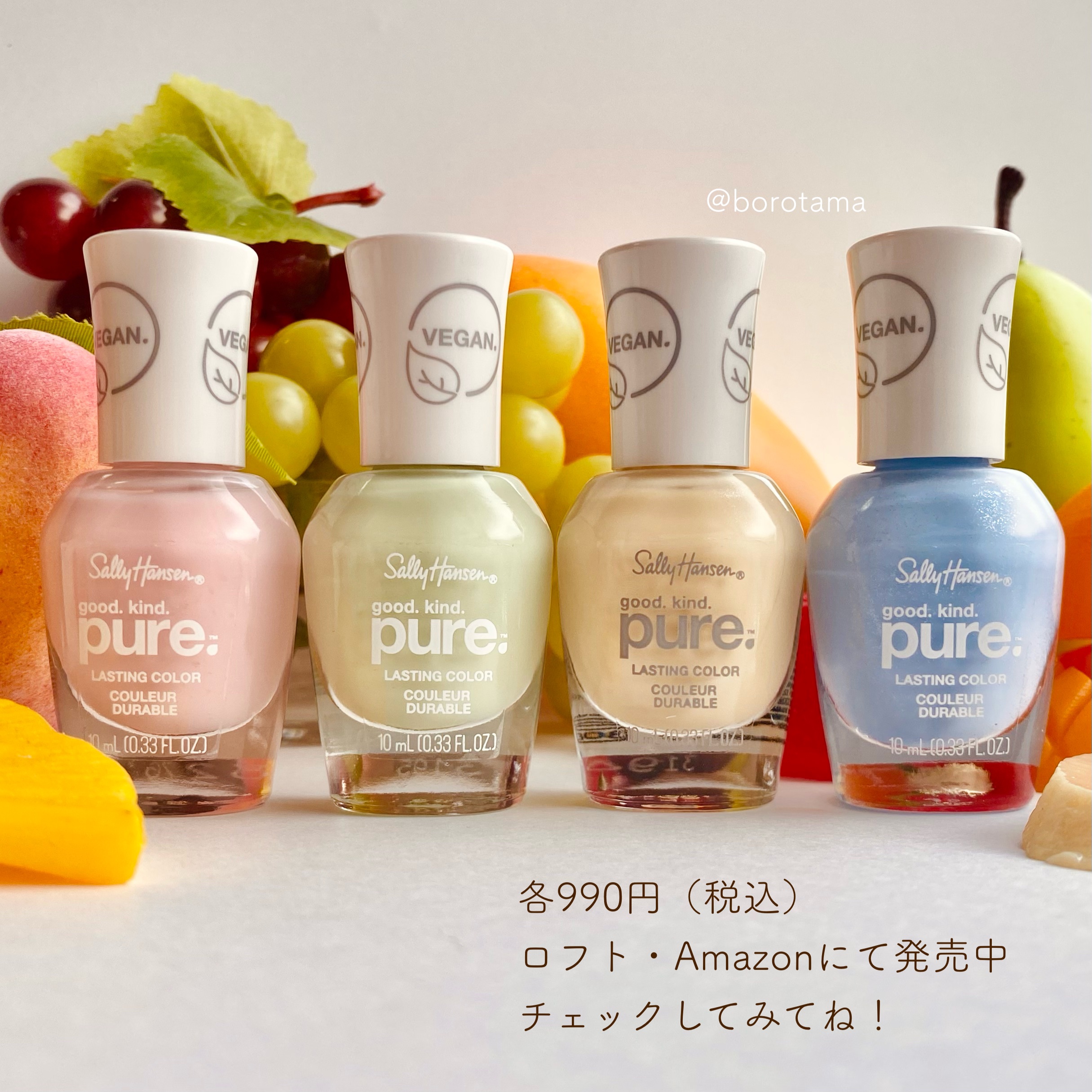 サリーハンセンの「good.kind.pure.」がまもなく発売開始となります❣️可愛らしいカラーが沢山あるネイル🤭🌈 ✔︎グッド. カインド. ピュア. ラスティング カラー(全8色)各990円(税込) 私は210と375がお気に入り❣️お求めやすい価格なので色々なカラーを試してみてはいかがですか?🩷