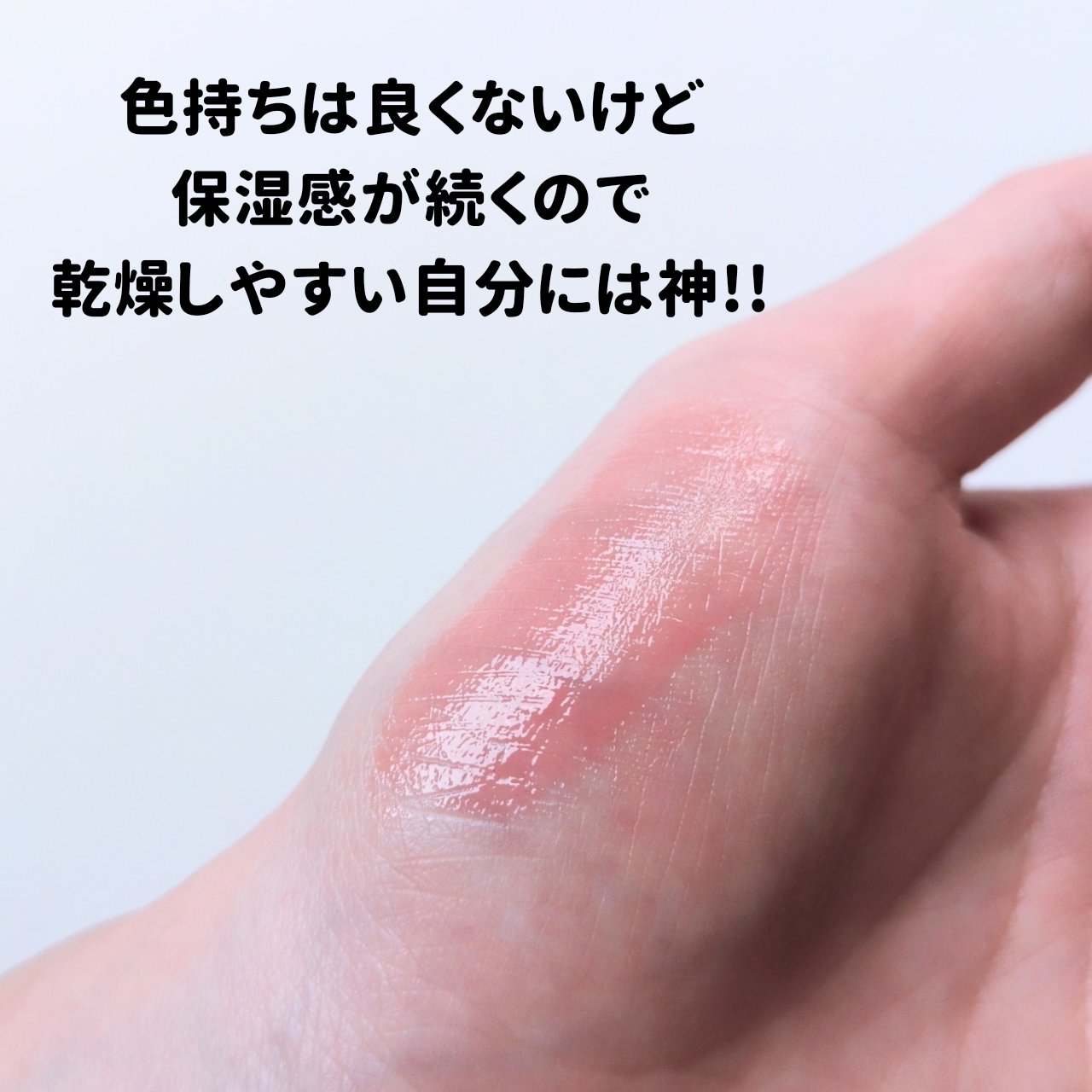 まずなんと言っても色みが激かわ!!! イエベ春さんには絶対01のピーチメルバがおすすめ!!! 可愛らしいピーチピンクカラーで程よい華やかさもあるから 私と同じスペックの人は絶対ハマると思う🍑💫 つやっつやぷるんぷるんの仕上がりもたまらんよね🥹💖