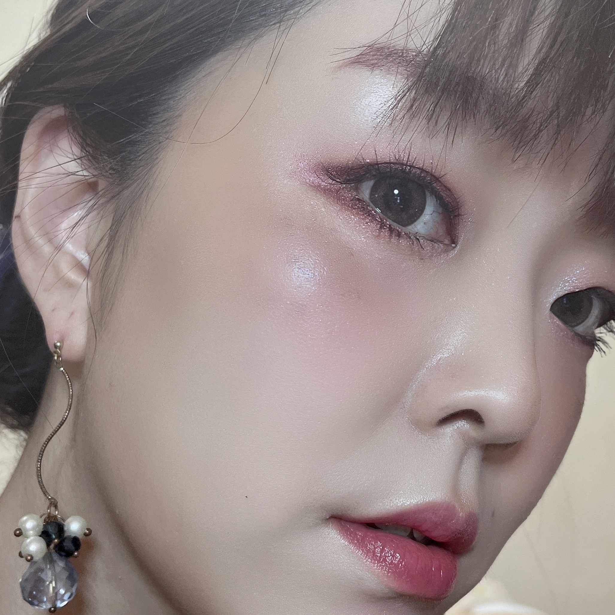 このパレットはあんまりラメ感強くない仕上がりが好きです。 マットでもなくてパール感とかほんのりツヤ感というか。しっかり奥行き出るけどナチュラルに見えるように使うのが1番好き。 濃いめにガツンと使ってるけど使い方によってはもっとナチュラルにもいける。 チークは範囲広めにあんまり色出過ぎず、血色感のみを意識。 アルマーニのグロスも2024年マイベスコス。 単色でもいける濃さですが、重ねてニュアンス変えたりグラデにしたり、ちょっと軽めになるところが大好き。