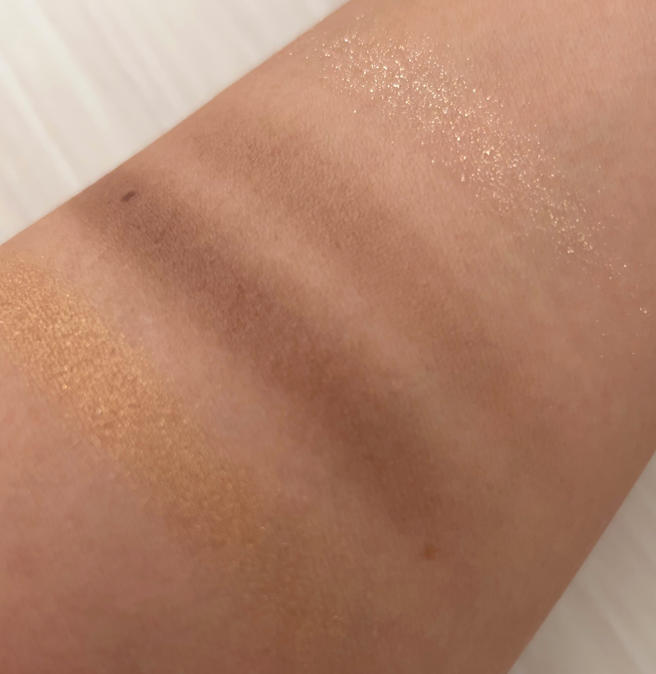 左上はキラッキラな大粒のシャンパンゴールドが 超絶綺麗でうっとり⋯🤤💎 右下はツヤツヤメラメラなイエローゴールドで めちゃくちゃ良い感じのアクセントに💛 右上のモカベージュは1色でも綺麗に簡単に陰影が作れる🫖