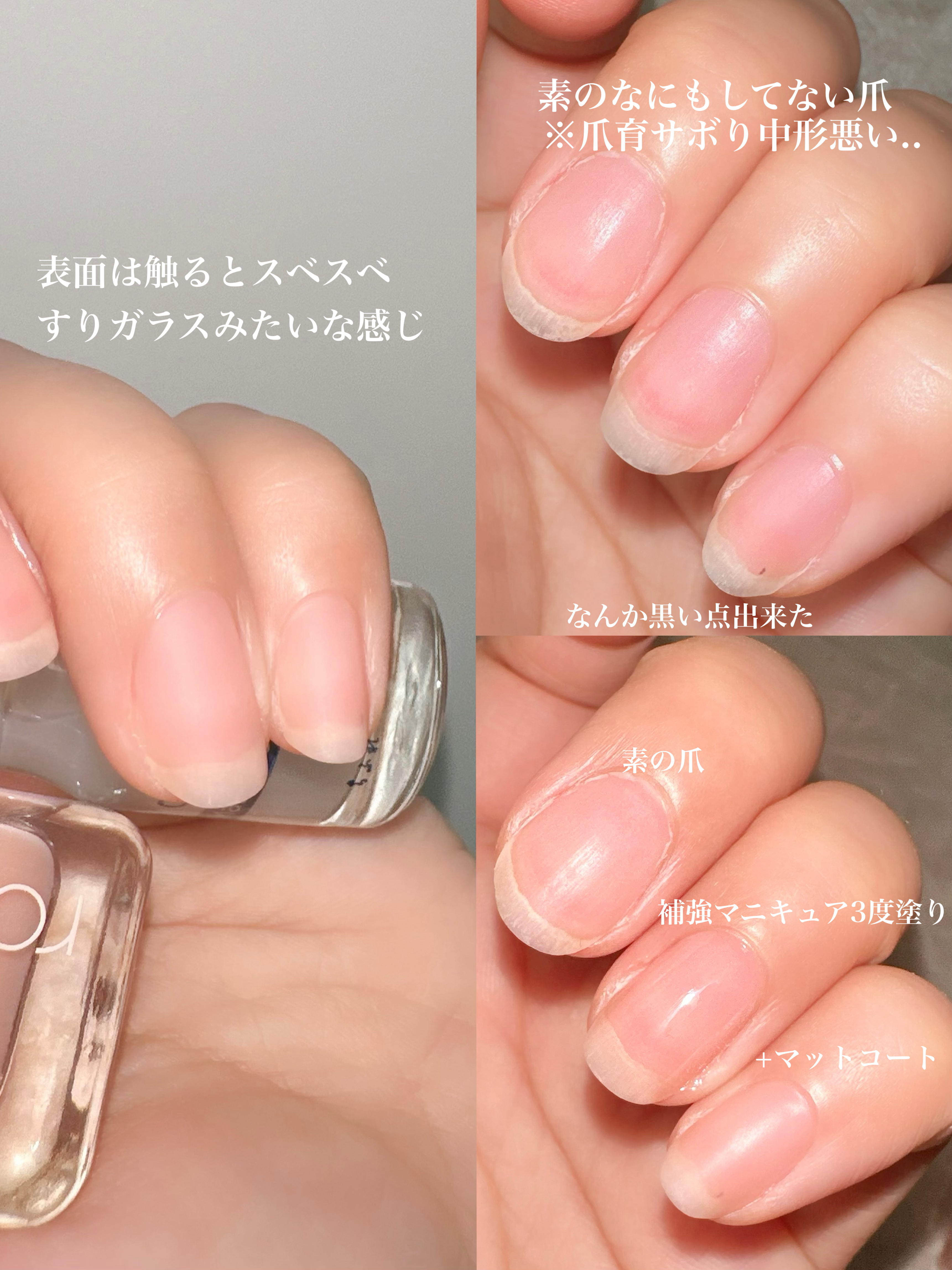 ハンドモデルの方のおすすめで購入してみました!爪の補強はもちろん、ナチュラルなピンクの血色が爪にプラスされて、うっすらネイルをしているようです。マニキュアほどではなくて、少しだけオシャレをしたい時にたのしんでいます!他のいろも検討中。。。‧˚...