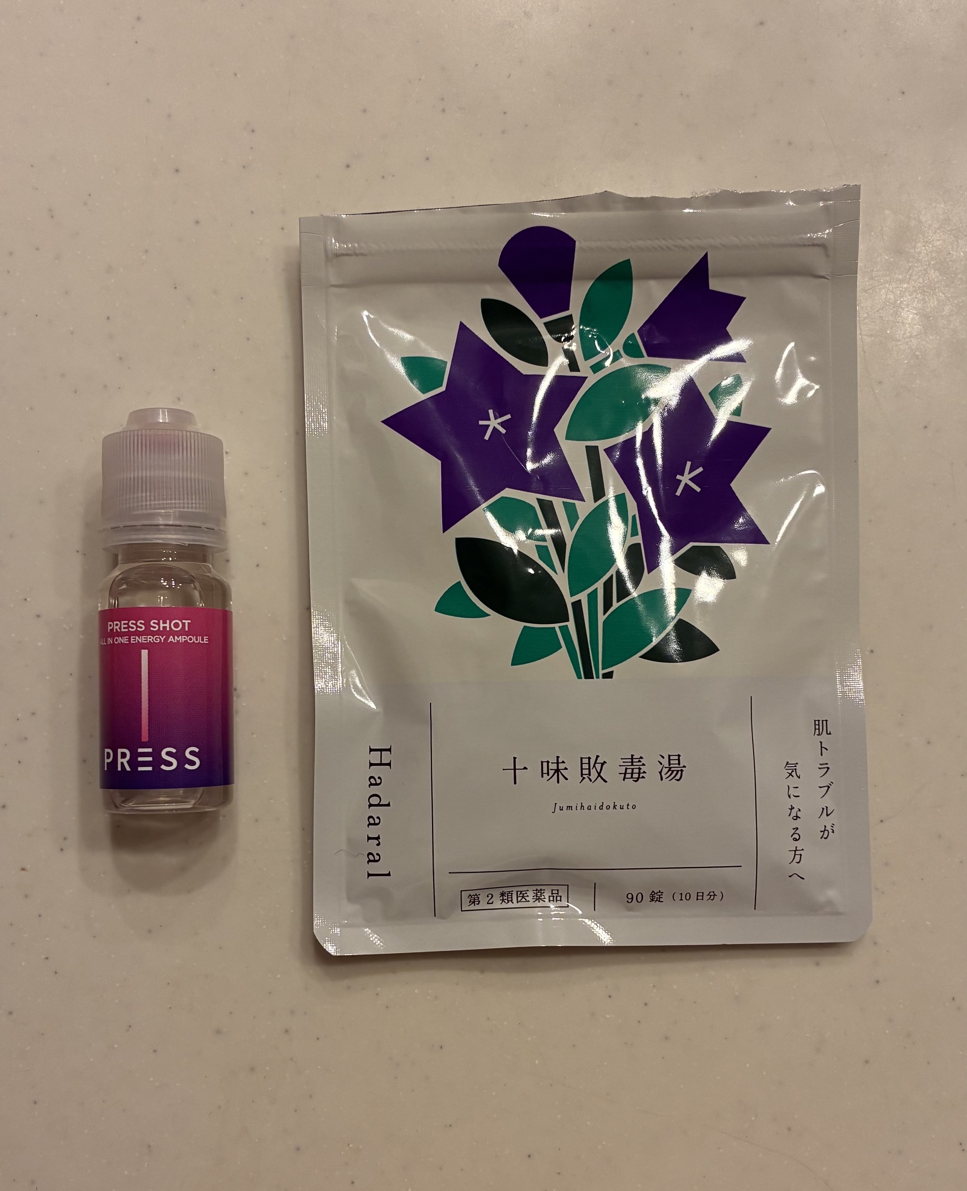 【もぐもぐ日記4日目】今日はちゃんとお風呂に入って、スキンケアをしました🛀夜:十味敗毒湯 (3粒/回) PRESSSHOT(1本) ハーブ&ゲル IPSAザ・タイムRアクア IPSAクリアアップローション1 肌全体的に白ニキビや、ニキビ予備軍ができていて自分の肌を見るのが嫌になります😭また無意識の内に、掻いてニキビを潰してしまっているので気をつけたいと思います💦何かニキビにあったスキンケア商品などがあったら、教えてくださると嬉しいです😢✼••┈┈••✼••┈┈••✼••┈┈••✼••┈┈••✼ここまで見てくださり、ありがとうございました!また明日もチェックしてくださると、嬉しいです(*ᴗ͈ˬᴗ͈)ꕤ*.゚✼••┈┈••✼••┈┈••✼••┈┈••✼••┈┈••✼PressShot:https://lipscosme.com/posts/7751228?_t=zLqY&_r=lAkg7PHerb&gel:https://lipscosme.com/posts/7692290?_t=zLqY&_r=lAkg7P1日目:https://lipscosme.com/posts/7824985?_t=zLqY&_r=lAkg7P3日目:https://lipscosme.com/posts/7829429?_t=zLqY&_r=lAkg7P✼••┈┈••✼••┈┈••✼••┈┈••✼••┈┈••✼#ニキビ#肌荒れ#拭き取り化粧水#脂性肌#もぐもぐ日記#夏の保湿ルーティン
