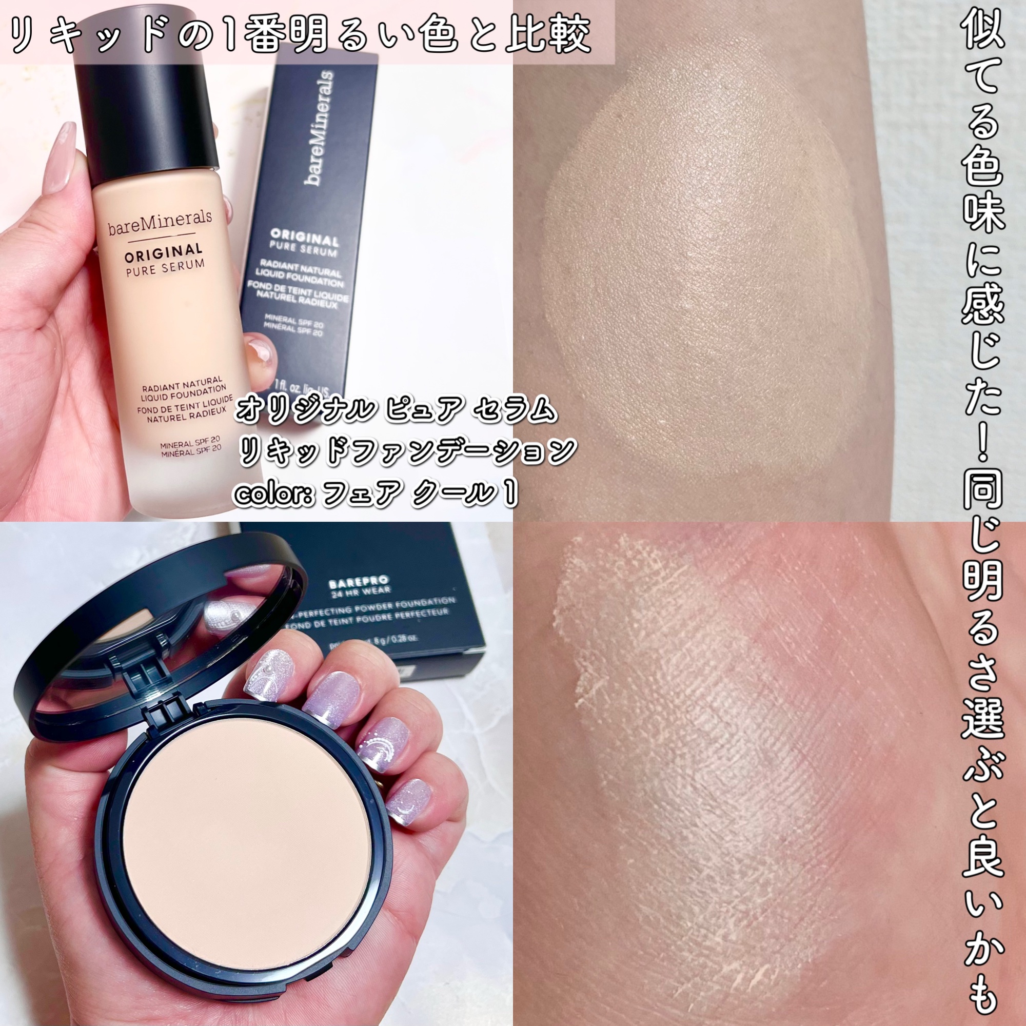 #ほぼ美容液ファンデ ツヤ・薄づき高カバー・厚塗り感無し💓/bareMineralsオリジナルピュアセラムリキッドファンデーションcolor:フェアクール193%美容液配合のファンデで、単体使用でもSPF20・PA++なのが有難い!色選びで悩みましたが、クチコミでやや暗めというのを見たので1番ピンク寄りで1番明るいフェアクール1をチョイス。普段、デパコスのファンデでは、ピンク寄りの中で2番目に明るいものが私はしっくりくることが多い。顔に塗布するとはじめは少し明るく感じたけど、ツヤがキレイに出て、顔が白く浮くというよりは自然にトーンアップしてくれた感じでした。このカラーにして良かった!クレンジングでオフしたら肌疲れを感じずしっとりした肌でいれたのが嬉しかった。慣れるまで使い方が難しいことと、毛穴カバーはすこし私には物足りなかったけど長所の方がたくさん感じたのでお気に入りのファンデになりました!#PR#ベアミネラル#ほぼ美容液なミネラルリキッド#秋の自分磨きレシピbareMineralsの公式Xで、詳しい使用方法を見つけたので、ご使用前に参考にしてみてね🌟👇https://x.com/baremineralsjp/status/1831555258310598677?s=46&t=D815S1clNER7okpZ96VAfg