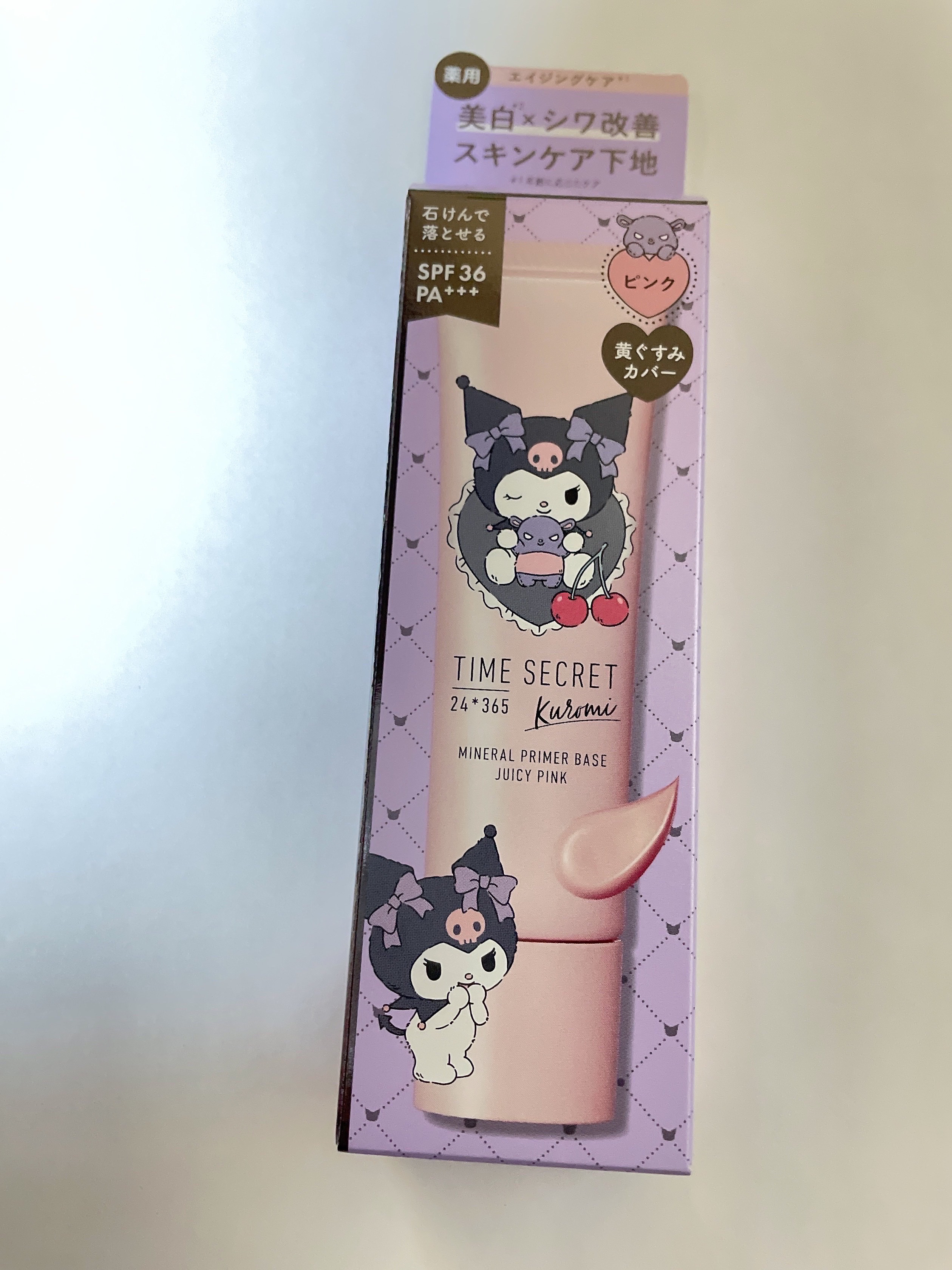 クロミちゃんデザインの美白ベースなんてかわいいし気になるし欲しい╰(*´︶`*)╯♥️ めちゃくちゃかわいい箱も♥️ #TIME SECRET #ミネラル 薬用プライマーベース #ピンク #サンリオクロミデザイン #ビジュ優勝コスメ