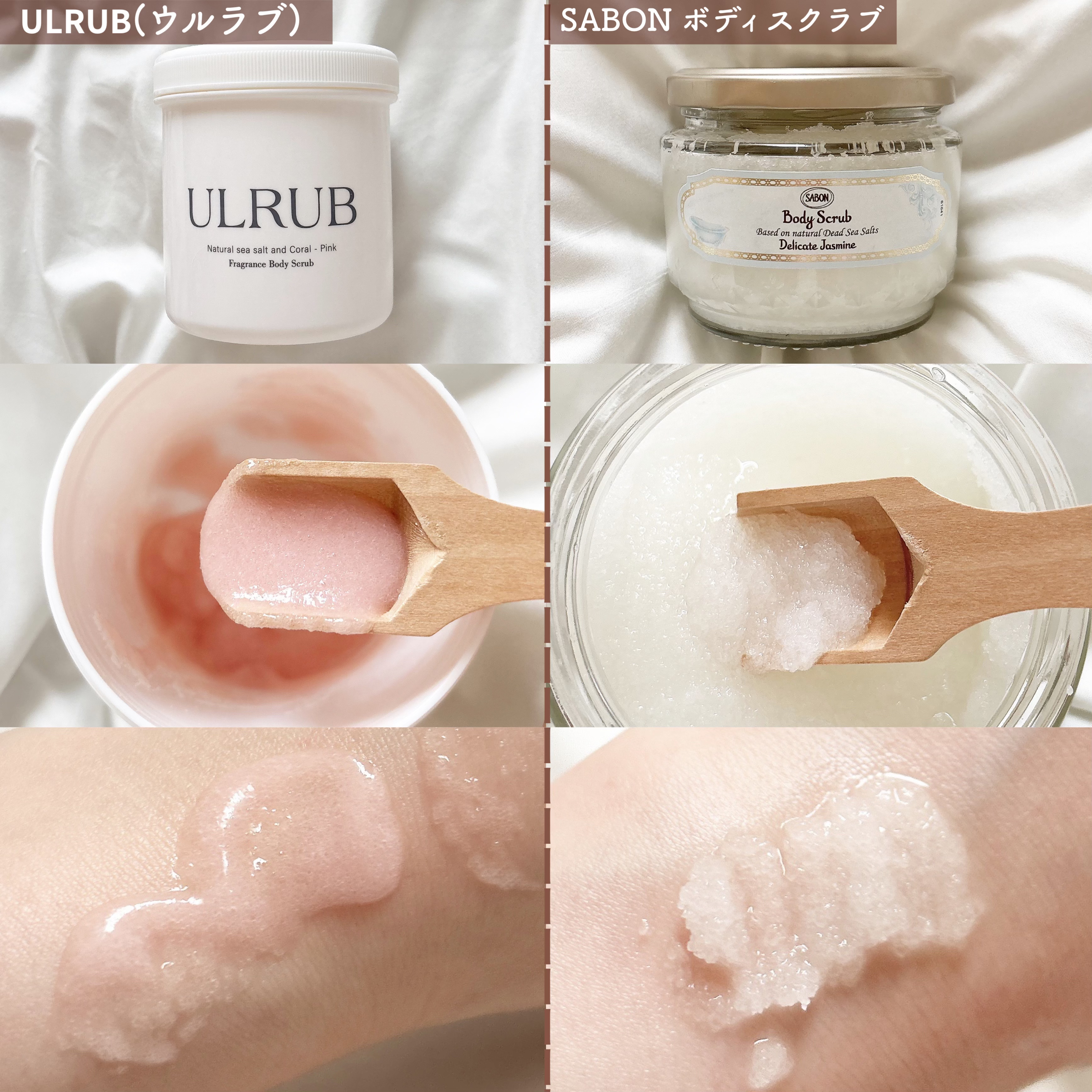 つるすべ肌に仕上がる🦢🫧/おすすめスクラブ2選୨୧┈┈┈┈┈┈┈┈┈┈┈┈┈┈┈┈┈┈୨୧🏷チュラコス𝗨𝗟𝗥𝗨𝗕(ウルラブ)2年ほど前からずっと愛用しているスクラブ💖このスクラブは特に肌のザラつき・黒ずみが気になる方におすすめ!使用後はつるすべ触感の肌になれるのが嬉しい🥹👏🏻もったりとしたアサイーみたいな、重みのあるテクスチャーです🥣肌荒れ箇所やデリケートゾーンなどに使用する際は、直でスクラブを塗るとヒリヒリしちゃうので、泡立てネットで泡状にしてから使用するのがオススメ🙌🏻泡立てて使えば毎日ボディソープとしても使えるのも魅力的✨️🏷SABONボディスクラブ(デリケートジャスミン)見た目もおしゃれで可愛くて、気分の上がるデザインなのがお気に入りポイント🫶🏻サボンのボディスクラブはシャリシャリとした質感で少しオイリーな感じ!肌に馴染ませていくと次第にオイルっぽさも無くなってきます!香りもすごく良くて、使用後は香りが残るのが嬉しい!プレゼントにも喜ばれるのでオススメです🥺👏🏻୨୧┈┈┈┈┈┈┈┈┈┈┈┈┈┈┈┈┈┈୨୧ぜひ参考にしてみてください🦢🤍#スクラブ#ボディスクラブ#ulrub#ウルラブ#sabon#サボン#スキンケア#おすすめスクラブ