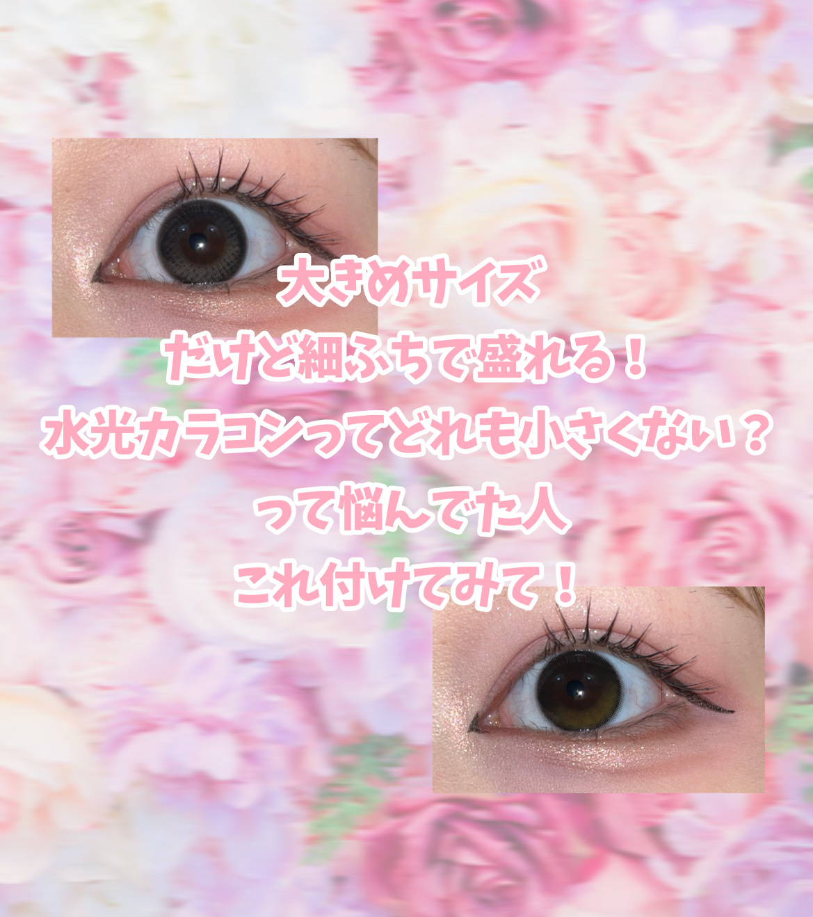 水光カラコンって着色直径13.2mmだったり大きめだけど太フチだったりが多くないですか? ♡melange+chouette クレセントオンブル DIA14.5mm 着色直径13.7mm 細ふちだけど着色直径大きめほんとにありがたい🙏 奥目でもしっかり光入ってちゅるちゅる目になれる