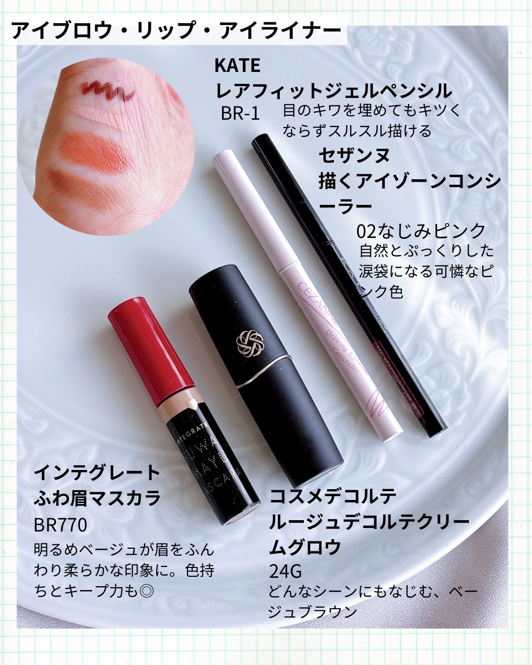 2025上半期👑私的ベストコスメ上半期はたくさんコスメを買ったわけじゃないけど、購入した子たちがみんな当たりでヘビロテしていたよ🌷①☑️キュレル✔️キュレル潤浸保湿ファンデ負担防止ベース肌の凹凸をなくしてファンデの負担を減らすという下地。ファンデの負担が軽くなった実感はないけど、トーンアップがとても自然で使いやすい✨②☑️SUQQU✔️ザファンデーション110年齢を重ねた肌もこのファンデにかかれば、美しくなめらかに何ってしまう🥺現在溺愛中!昨年のコフレで購入したハーフサイズなのだが、少量でよく伸びるから半分も使えてない。コスパ良し👍③☑️2aN✔️ベターミーアイパレット11ドリーミング最近ピンクメイクが好きになったのはこのパレットのおかげ💕大人でもゆるふわ可愛い印象になれる!④☑️Fujiko✔️オートマチックシャドウ03ハーモニーベージュイエベだとものすごく馴染んじゃうんだけど、それもまた可愛い💫上からラメを重ねても雰囲気が変わって良き☺️⑤☑️PERIPERA✔️シロッピートックチークMILKYLAVENDER今どきのツヤと発色が手に入るリキッドチーク。このカラーはイエベでも浮かない。そして思い切りプッシュすると使いきれない量が出てくるのでご注意を💡⑥☑️DEARDAHLIA✔️ペタルドロップリキッドブラッシャーBARELY肌色問わず使えるニュートラルカラー。ピュアな血色感を簡単に仕込めて、失敗しにくい。ただし、しっかり発色が欲しい時は物足りないかも🐰⑦☑️fwee✔️フィーグリッツストーンハイライターHL10オパールブルーミング普段使いしやすいホワイトピンクのハイライター(ブルベ向けらしいが、狭い範囲ならイエベもいける)。誕生石がモチーフになっているのも楽しい💎⑧☑️インテグレート✔️ふわ眉マスカラBR770パリパリにならず、ふんわり仕上がるアイブロウマスカラが。小回りのきく小さめブラシも使いやすい🥰⑨☑️DECORTÉ✔️ルージュデコルテ クリームグロウ24Grawumberとろけるような塗り心地で色持ちも良い。唇だけでなく、肌も美しく魅せてくれるルージュ🤎10☑️CEZANNE✔️描くアイゾーンコンシーラー02なじみピンク仕込んでおくだけで涙袋ができてしまう天才コンシーラー。使い方も涙袋に軽く1塗りするだけなので簡単🌷11☑️KATE✔️レアフィットジェルペンシルBR-1濃すぎず明るすぎないブラウンが絶妙。カラバリも豊富だから集めたくなる🪸*③、⑤、10、11はメイクアップアーティストのナディアさん推しコスメ💄ハズレがないくらいみんな使いやすかった😊#ベストコスメ2025#ベターミーアイパレット#ペタルドロップリキッドブラッシャー#ふわ眉マスカラ#オートマチックシャドウ#ルージュデコルテクリームグロウ#ファンデ負担防止ベース#フィーグリッツストーンハイライター#シロッピートックチーク#描くアイゾーンコンシーラー