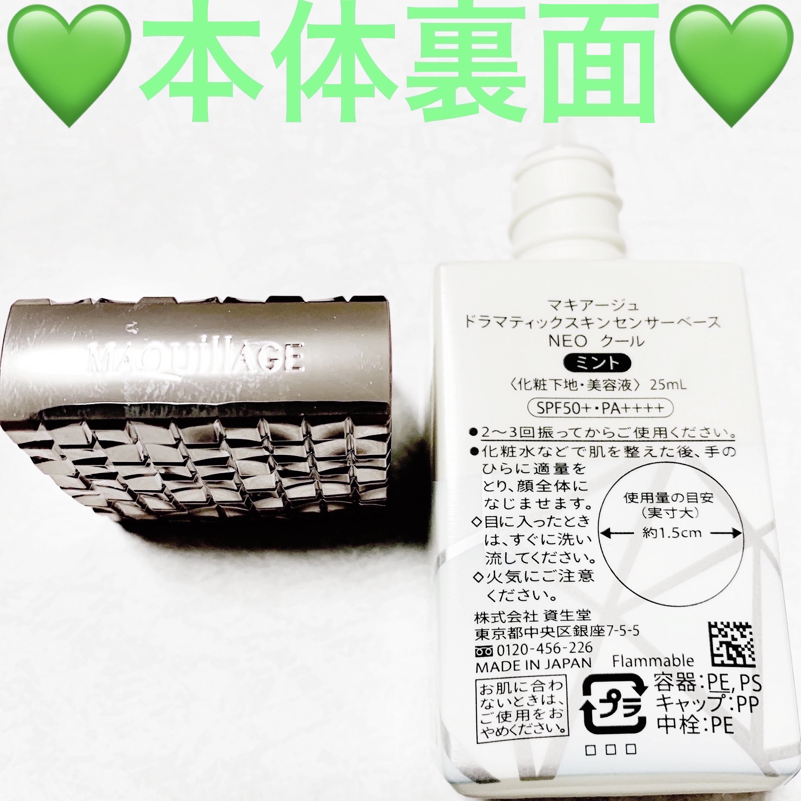 マキアージュドラマティックスキンセンサーベース💚クールミント💚 内容量:25mL 税抜き2,700円このクールタイプは、数量限定だそうです💚夏は赤みが出やすく、メイク中にも汗をかく位汗っかきなので、購入してみました💚POINTは1テカリ・カサ...