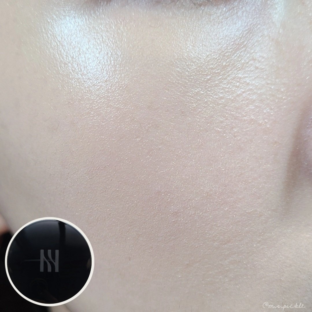 ツヤ感のあるブラックで高級感があります🥰 油分のついた手で触ると汚れが目立ちやすいので使用後はティッシュなどで拭くのがよさそうです🤔 しっとりとしたテクスチャーでつけた直後は少しペタペタしたので私は全顔パウダーを重ねましたが、セミマットな仕上がりなのでペタペタ感が気にならない方はパウダーなしでもよさそうです😊 今回お試しさせていただいカラーは21N1 バニラ 明るめのカラーでやや黄味が強め。ほどよくカバー力がありつつ厚塗りになりにくいように感じました😊