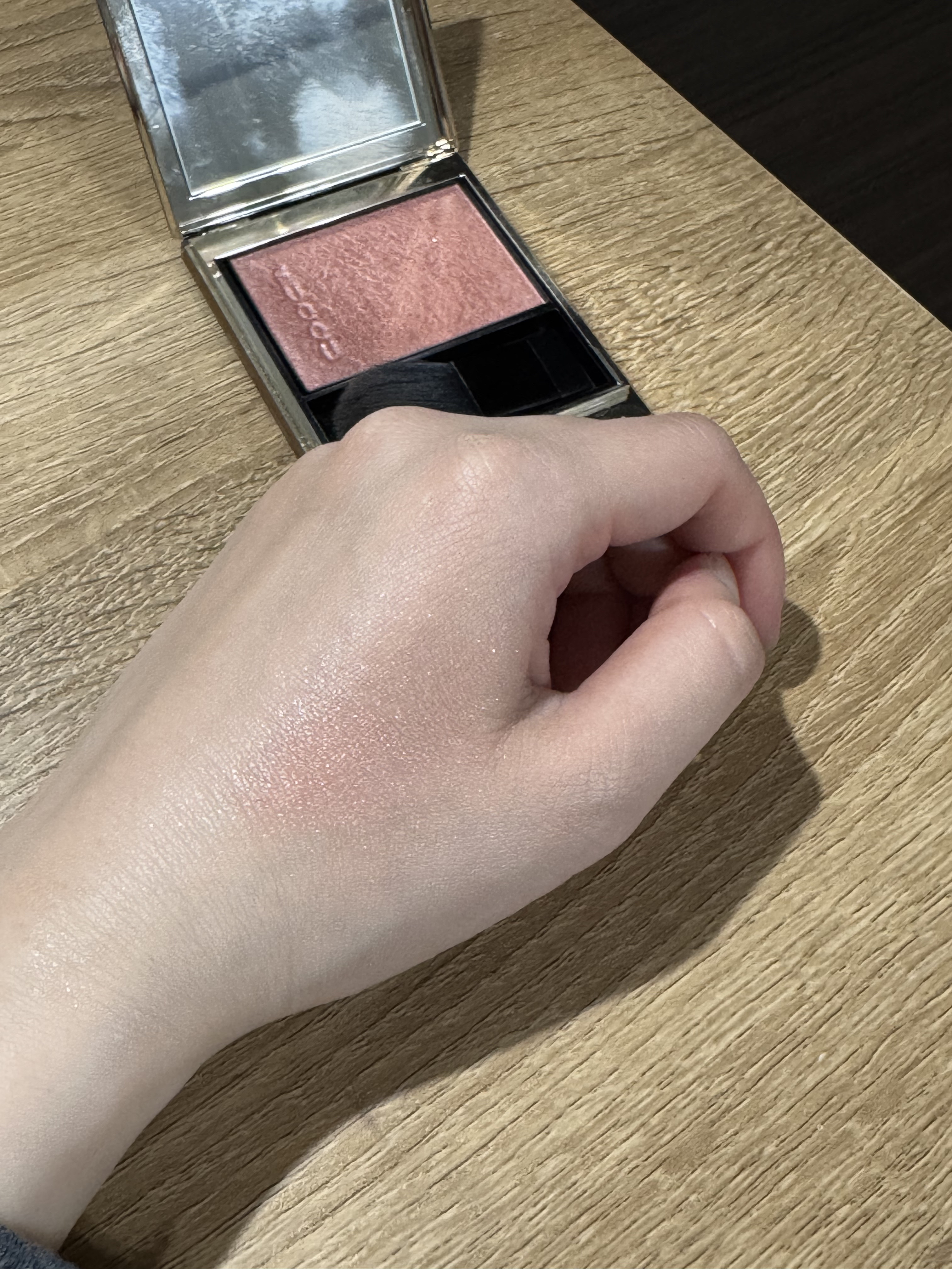SUQQUリフレクトハイライター102 サクラクウォーツ 限定色 ¥6,600SUQQUで珍しい漢字じゃない商品!ピンク系のハイライターで、ほんのり血色を足してくれます。重ね塗りすればチーク代わりにもできました!最初手にタッチアップした時はギラギラ感があって、私には使いこなせないなと思ったのですが顔に乗せたら綺麗なツヤ感に驚き!多色パールが綺麗!私にはピンクというよりコーラルに近い発色になりましたが、ピンク感が強くて使いこなせていなかったチークと合わせて使えそう!アイシャドウのラメ代わりにも使えそうです。公式より透明感たっぷりで繊細なパールの煌めきだけをのせることができるクリアライト処方を採用。ベースに透明感があることで、前にのせたメイクアップの色を損なわずに透き通るような輝きだけを添え、上品な艶感を演出するハイライター。さりげない血色感のある輝きを足せるパールピンク。レッドとシルバーのパールをメインに、少しのブルーとゴールドのパールを足すことで、温かみがありながら透明感も纏います。#SUQQU#SUQQUリフレクトハイライター102サクラクウォーツ#限定色#ハイライト#多色パール