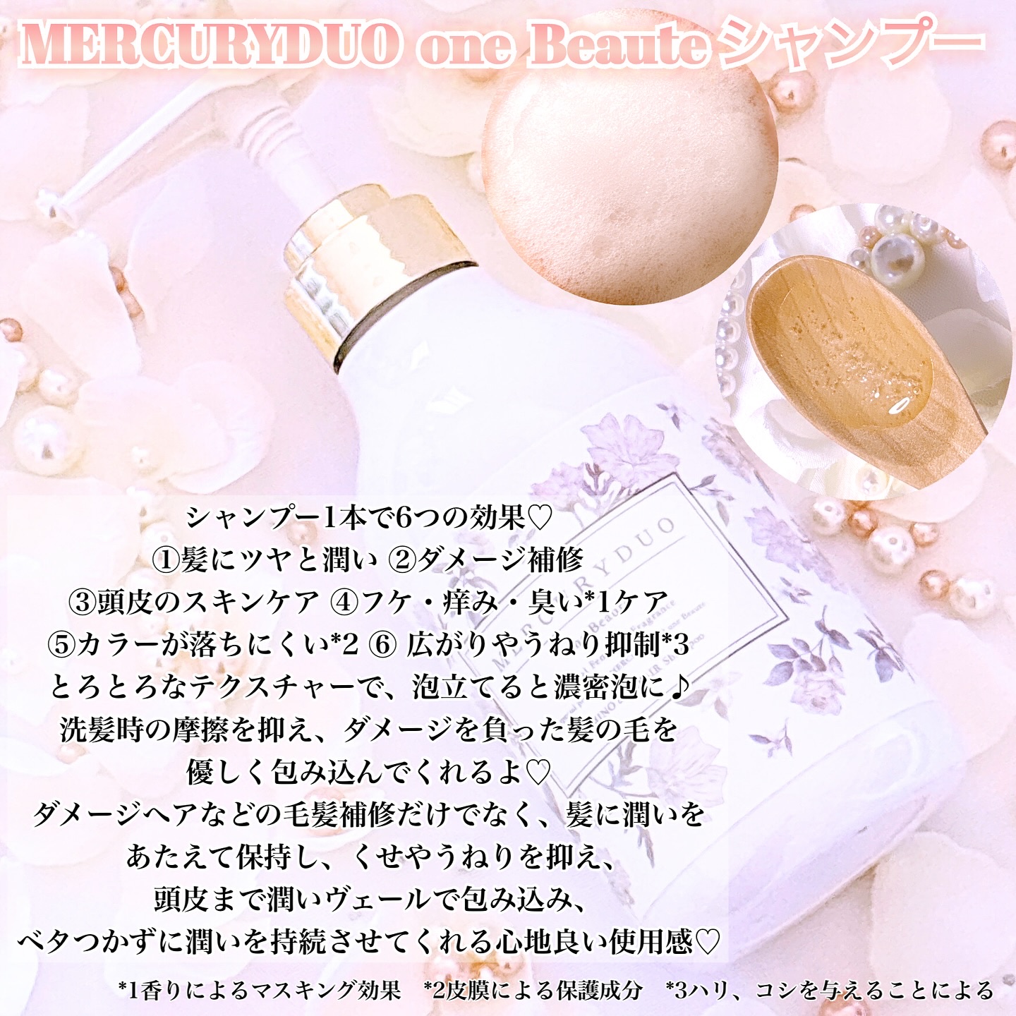 MERCURYDUOoneBeaute◻︎フレグランスシャンプー高保湿のとろとろ粘性シャンプー💭ヒアルロン酸・ケラチン・ヘマチン・エゴマ葉エキス・カゴメエキスなどを配合しているから、補修だけでなくうるおいとツヤをキープしてくれる🤍くせやうねり...