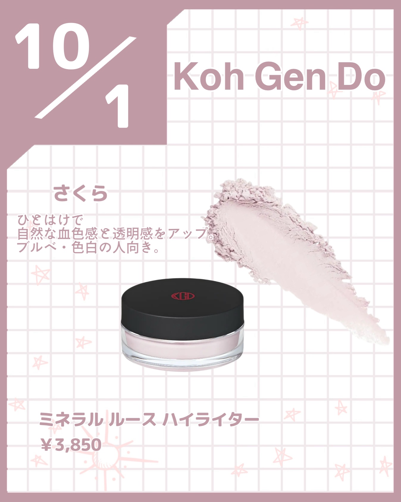 ナチュラルな血色感と立体感をオン✨ 10/1発売のKoh Gen Doミネラル ルース チークを使ってみました🩷 ほんのりした柔らかさと華やかさで、可憐な血色感と自然な透明感を演出してくれます✨ 粉漏れを防ぐ上のインナーキャップがブラシ置きになってて、使いやすい👍✨