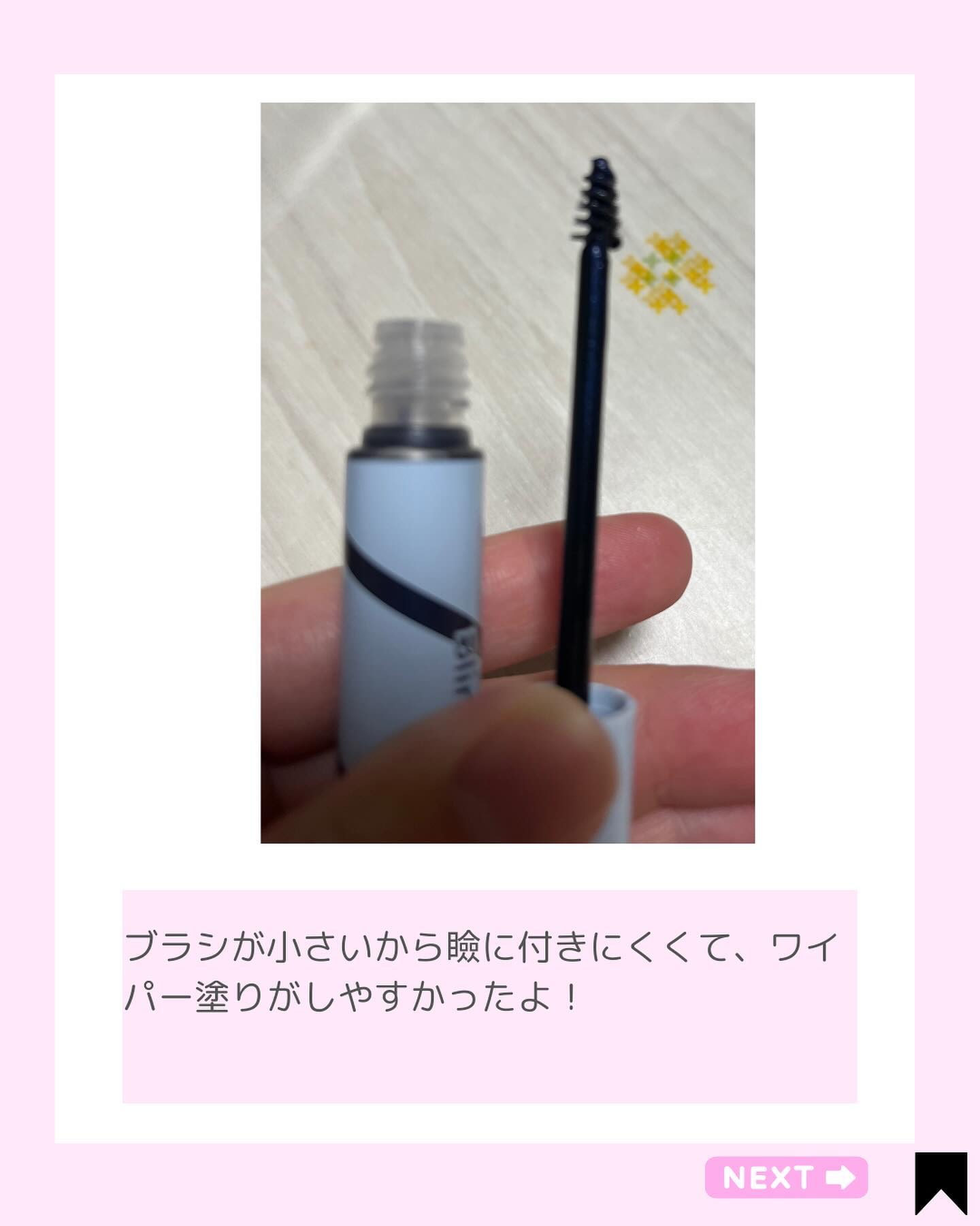 束感まつ毛にしたくて挑戦したんだけど、ピンセットで束感作るのって難しくて上手くいかないんだけど、これいつものマスカラの上からワイパー塗りするだけで簡単に束感になるの♡ 上品なネイビーでまつ毛が可愛くなったよ!お湯で簡単に落とせるし、マツエク、まつパーしてても使えるのが嬉しいポイント! メイク初心者さんや不器用さんに試してもらいたい🥺 いつもピンセット使って束感作ってる方これ使うと時短になって良かったよ♥️