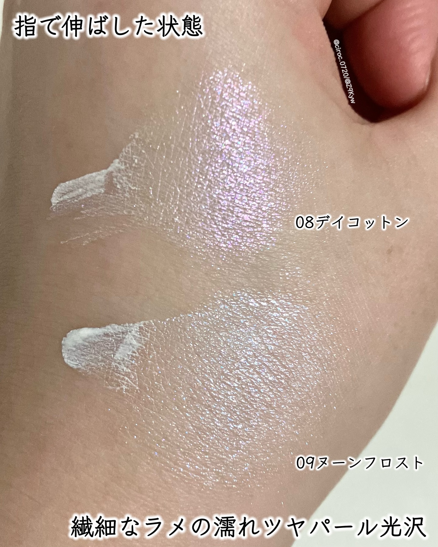 #PR#JAVINDESEOULジャビンドゥソウルウィンクアイシマーライト▼特徴シアーな輝きの微細ラメリキッドアイシャドウ。ハイライターとしても◎▼香りなし▼カラー08デイコットン"ロージーに輝くクールスキンコットン"ピンクがかったホワイトパールの輝き09ヌーンフロスト"淡い水色が透けるペールスノーホワイト"湖面のような青みがかったホワイトパールの輝き▼使い心地程よくすぐ乾くので伸ばしやすくヨレにくい。チップも小さめで強度があるので使いやすい。▼仕上がりあまり伸ばさなければピカーっと真珠のように輝き、薄く伸ばせば微細なパールがまるで肌に溶け込むように輝く、伸ばし具合で色々な使い方ができるマルチユースハイライター。乾くと密着してサラサラになるので、他のアイテムとも重ねやすい。▼まとめラメがとにかく繊細で美しく、全てのラメ好きさんにオススメしたい。程よいかたさと乾く速さで非常に使いやすく、容器の作りもしっかりしているのでプレゼントとしてもオススメ。▼Qoo10にて購入可-商品提供:ジャビンドゥソウル#ジャビンドゥソウル#ウィンクアイシマーライト#韓国コスメ#コスメレビュー#リキッドシャドウ#リキッドアイシャドウ#アイシャドウ#qoo10#リキッドハイライター#透け感ラメ紹介動画