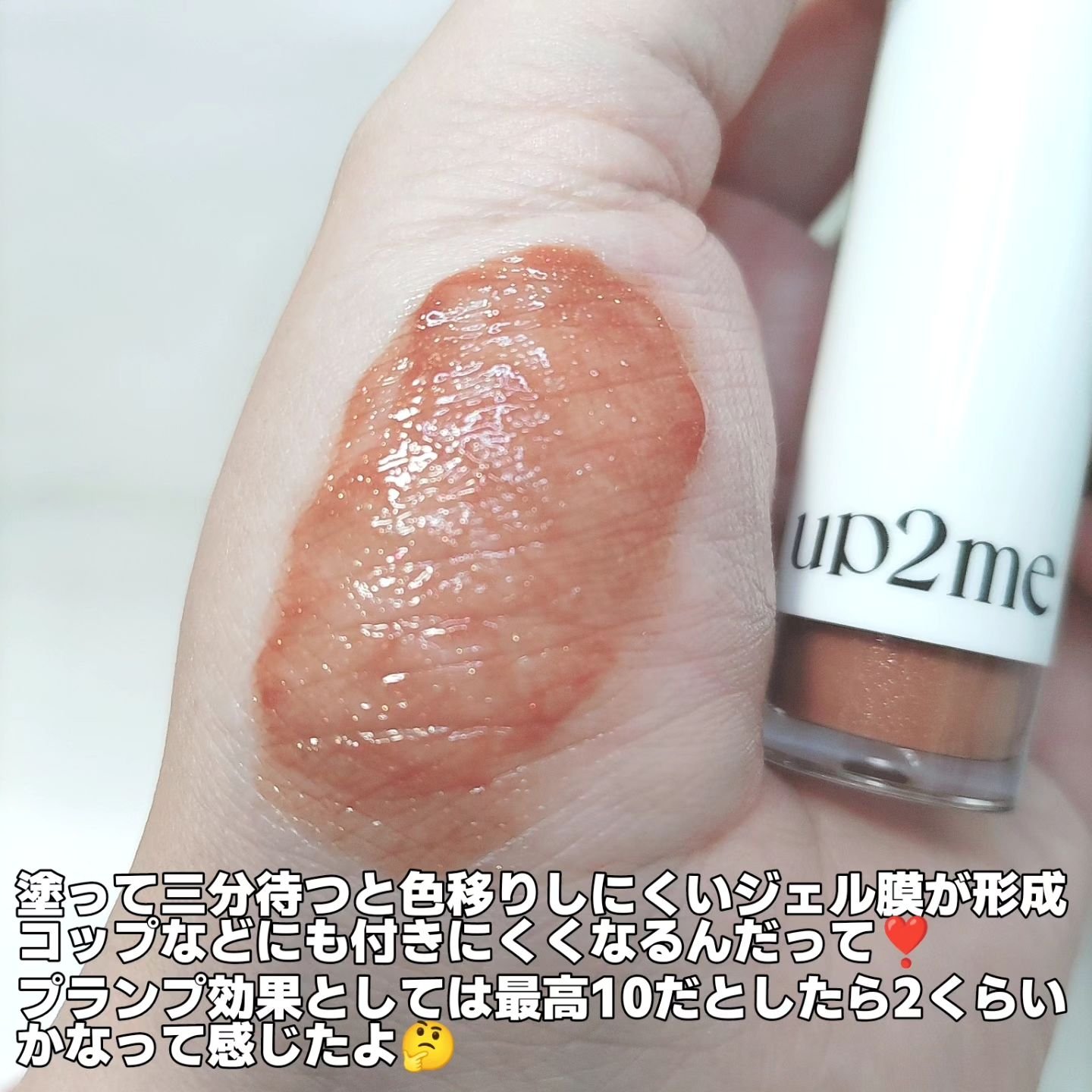 縦ジワ知らずのちゅるっちゅるな唇になれちゃう up2meのハグマイリップ。 シアーな色味×色彩の異なるキラキララメで透明感のある仕上がりに✨ 優しめなプランパー効果はピリピリが強すぎないから痛いのが苦手な方、プランパー初心者の方にもよさそう🙆♀️