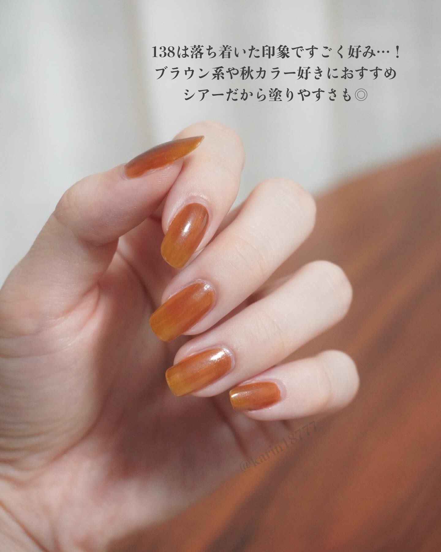 こっくり柔らかカラーが可愛すぎる Genishの秋新色で好印象な知的ネイル🍂 秋らしく落ち着いた色味がとっても素敵… 8/3(土)全国発売開始の秋コレクション☕️ これぞまさに秋カラー! たっぷり黄味を感じるアンバーブラウン🍐