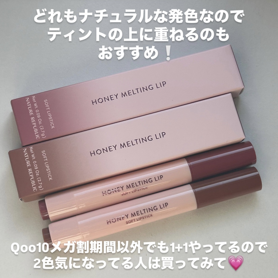 【はちみつリップにピンクパケ登場!?💗】#ネイチャーリパブリックハニーメルティングリップ¥1,320(Qoo10)(1+1¥2,380)後ろの部分をカチカチ押すと中身が出てくるタイプ!もったりしたテクスチャだからはちみつ塗ったみたいな重めのツ...