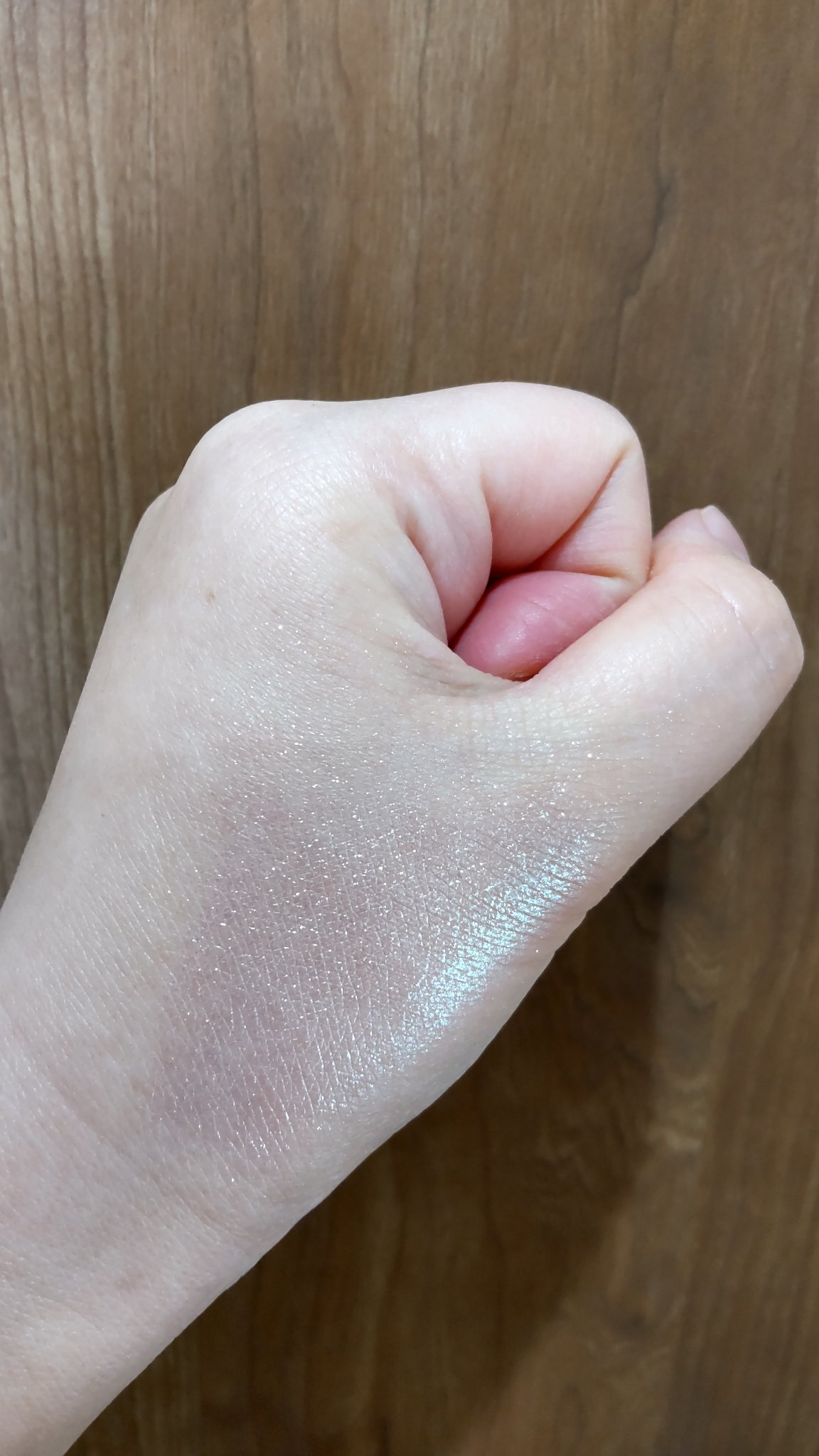 ラメのザクザク感が伸ばす時に感じ 人によっては苦手と思う方もいるかも パープルの血色と透明さにグリーンラメが均一に輝きより奥行きを感じる瞼に仕上げてくれる 透明感と奥行きのある仕上がりがお好きな方にお勧め