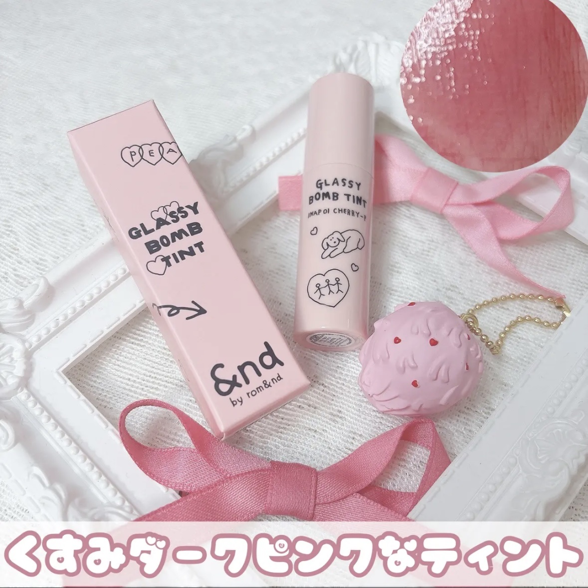 抜け感のあるくすみダークピンクティント🎀&ndbyrom&ndのミニリップෆ┈┈┈┈┈┈┈┈┈┈┈┈┈┈┈┈┈┈┈┈&ndbyrom&ndグラッシーボムティントINAP01チェリーピー¥820┈┈┈┈┈┈┈┈┈┈┈┈┈┈┈┈┈┈┈┈プリンのようなぷるんとした光沢感が特徴のリップティント🍮🤍水分量多めでティッシュオフ後もツヤ感がそのまま感じられる🫶INAP01はダークピンク系のカラーでくすみ感が大人っぽい✍💗青み感が強いように感じますが、ティッシュオフすると控えめなピンクカラーに塗った直後もティッシュオフ後も透け感が感じられる発色だと思いました💌ナチュラルメイクにも取り入れやすい絶妙な発色・色味だと感じます🌸ミニサイズなので持ち歩きにも◎┈┈┈┈┈┈┈┈┈┈┈┈┈┈┈┈┈┈┈┈#新シーズンあか抜け計画#韓国コスメ#ローソン#プチプラコスメ#ティント#リップティント#限定コスメ#ティントリップ#プチプラ#コスメ#コスメレビュー#ブルベ夏#コスメ紹介#ローソン_ロムアンド#プチプラリップ#ピンクコスメ#リップ#リップメイク#ミニコスメ#&ndbyrom&nd#グラッシーボムティント