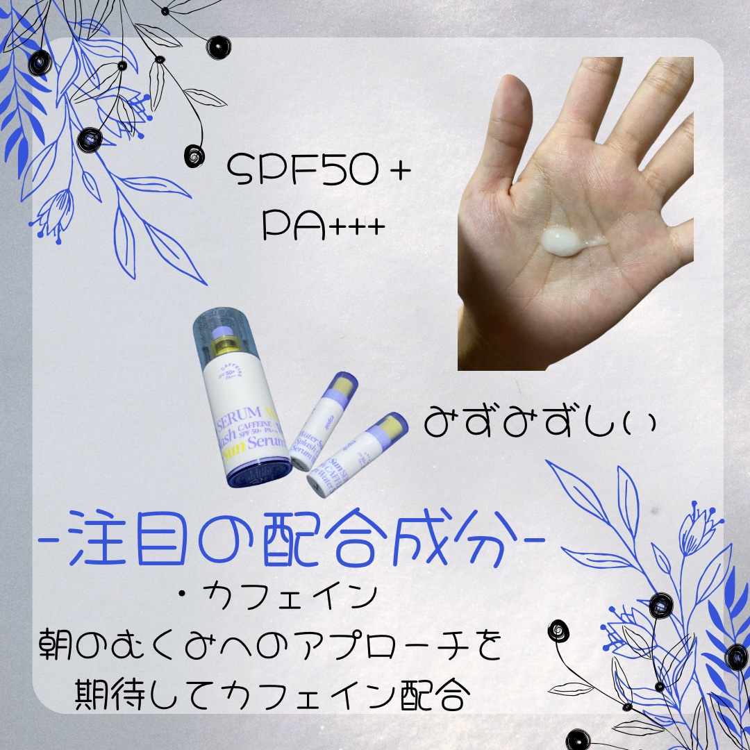 カフェイン成分が入っていて、お顔のむくみをケアするそうです😲! スキンケア➕日焼け止めクリーム➕化粧下地がこれ一本で出来ちゃうオールインワン美容液です😍 すごく軽いつけ心地なのにSPF50 PA+++で、しっかり紫外線をカットする優秀アイテムでとてもおすすめです❤