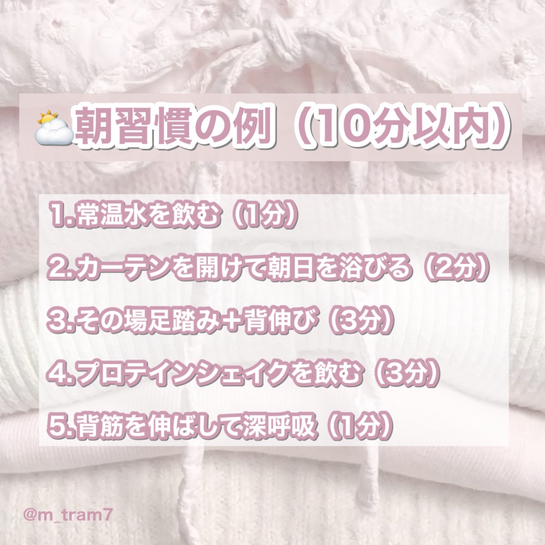 日々の習慣で痩せやすく🕒💪🏻💕朝の5~15分程度で痩せやすい身体を目指す❕自身の生活に合わせてできることから実践📝———————————————🔗痩せやすい体づくり習慣———————————————1.起きたらコップ1杯の常温水•就寝中に失わ...