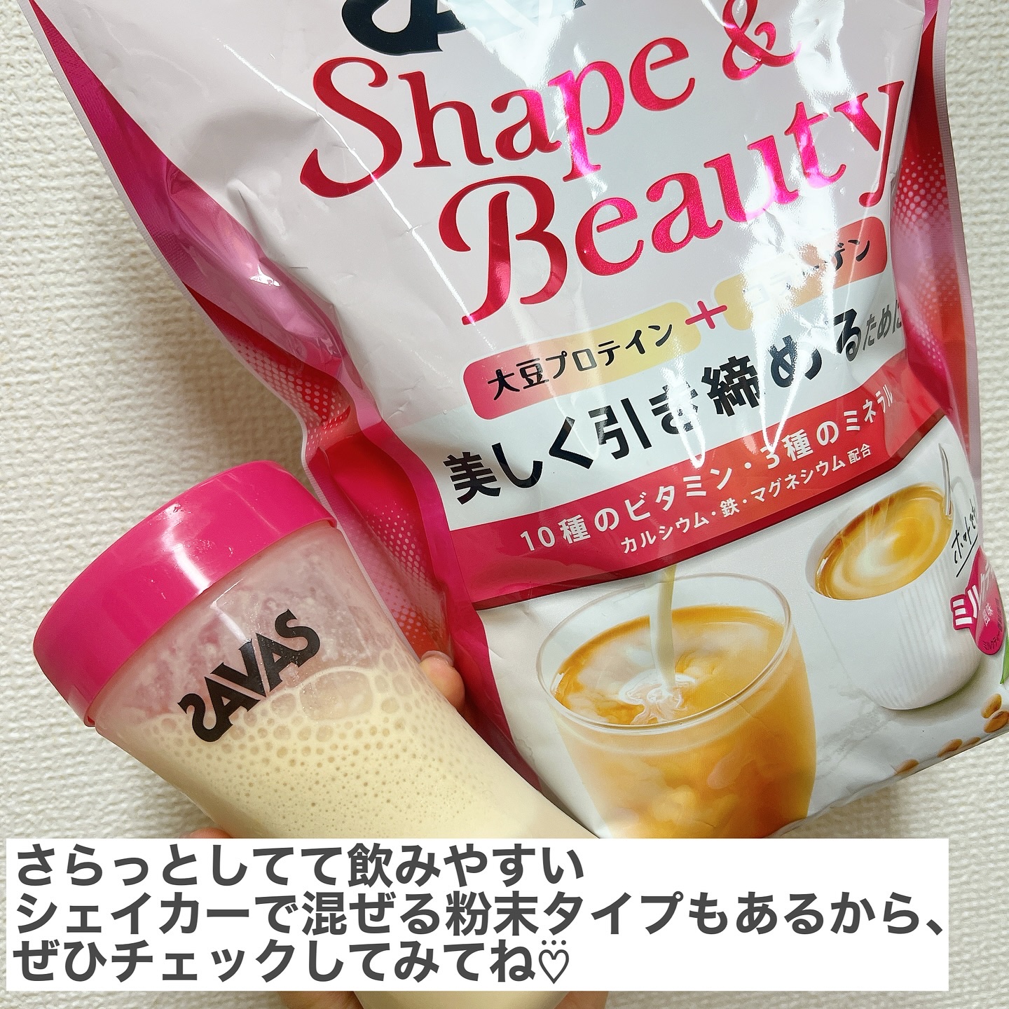 健康的でキレイなカラダづくりをしたい人におすすめ👩🩷*(ザバス)Shape&Beautyキャラメル風味*MAQUIAの『ヘルシー美活グランプリ2025』でグランプリに輝いたプロテイン飲料✨※受賞商品はミルクティー風味です*からだをつくる材料となるたんぱく質がこれ1本で12.5g摂取する事ができる✨さらにコラーゲンや鉄分、ビタミンなど女性に嬉しい成分が配合されています💞*(ザバス)Shape&Beautyキャラメル風味を飲んでみてびっくり!😳✨甘くて美味しいの😍❤️❤️*甘いからおやつ感覚なのに、からだにいい成分をたくさん摂れるから嬉しいです🙌♪私は仕事が一段落した午後に1本飲んでいます🥰手軽に飲めるからおすすめ❣️**粉末タイプもあるよ❣️粉末は粉が細かい✨☝️思いっきりふらなくても、やさしく少し混ぜるだけで溶ける✨作りやすいし、飲みやすいです🥰🩷