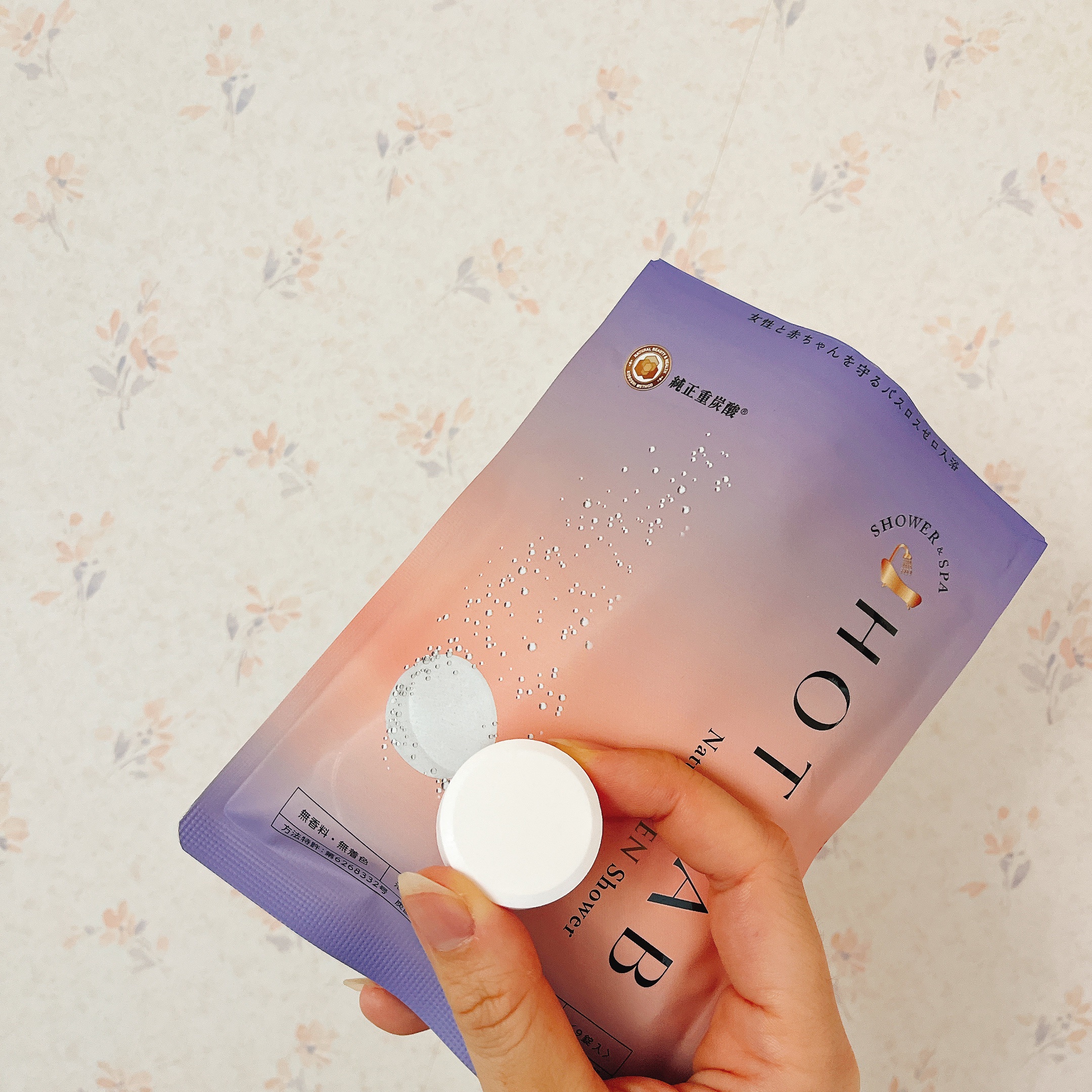 高濃度の重炭酸イオンの自然の泡が、皮脂バリアと肌の潤いを残したまま肌も髪もやさしく洗い上げ、地肌の汚れもしっかり洗い流してくれるようです髪や頭皮も健やかに保ち、うるおいあるお肌や髪に導いてくれるようです◎長時間濃度が持続するため、後から追い焚きすれば翌日まで効果を楽しめるようです!ホットタブシリーズはゆっくり発泡し、重炭酸イオンがお湯の中に溶け込み長く留まってくれる仕様なようです(お湯の温度によって異なるようですが、浴槽に入れてから15~30分ほどゆっくり溶解するようです!)よくある発泡するタイプの入浴剤に比べ、溶解しきるまでの時間はかなり長めに感じました◎我が家には専用のシャワーヘッドがないので、浴槽に入れて楽しみましたが、いつもより柔らかなお湯だったと思います!無色で香りも気にならなかったので、子どもも気にせず入れるのが嬉しい!髪やお肌にも嬉しい処方なので、お風呂タイムがめちゃくちゃ癒し空間になりそうです浴槽に溶かす場合3錠入れるので、贅沢に感じますがリッチな気持ちで満喫したいと思います◎