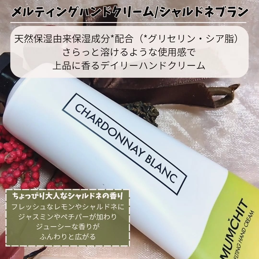 #シャルドネ『#レールデュサボンMINIフルーツフルデイオードトワレ/シャルドネティーの香り』実りの秋を象徴するシャルドネをティーでまとめたような上品な香りこの秋流行するらしいシャルドネの香りが魅力的なオードトワレ🍁さりげなく甘酸っぱく爽やかな香り(マスカットっぽい)が心地良く、時間がたつと秋らしく落ち着いた深みのある香りに変わっていくつけてるだけで、うっとりした気分になれました✨ポーチとかに入れて持ち運べるサイズ感も良いと思った!『#メルティングハンドクリーム』ちょっぴり大人なシャルドネの香りのハンドクリームさらっと溶けて肌になじむような使用感で、しっとり感があるのにベタベタ感が気にならないから、すぐにスマホなどを触ったり作業ができる!さっぱりした爽やかなシャルドネの香りが、香水みたいにふんわり香るのも楽しい!#PR#オードパルファム#香水#ハンドクリーム#レールデュサボン#シャルドネの香り