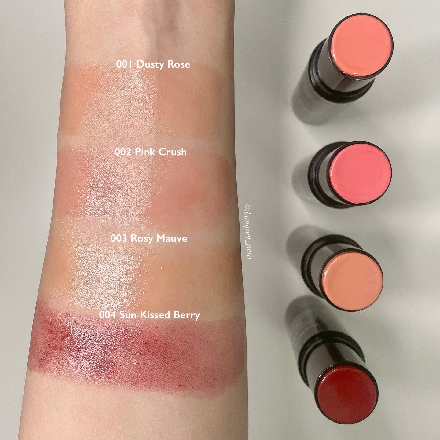 「glowiest」さまから商品提供していただきました♡全部可愛すぎっ‼︎//*glowiest*❤︎EffortlessGlowCameliaMulti-Balm 001DustyRose 002PinkCrush 003RosyMauve 004Sun-KissedBerry❤︎CollagenGlowRoseGoldEyeMasks❤︎SweetDreamsminiLipMaskscherry(5g)❤︎BagBlack[EffortlessGlowCameliaMulti-Balm]1本でヘアライン、アイシャドウ、チークリップと使えるマルチバームヒアルロン酸 ビタミンCカメリアシードオイルナイアシンアミド配合なめらかなテクスチャーで体温でとろけるな塗り心地〜🤤✨反対側がブラシになっているのも嬉しいポイント〜♪発色はナチュラルでぼかしやすくチークにはもちろんアイメイクはベースとしても単色でも◎リップはしっとりしてくれるしヘアラインに使えるのもうれしい♡001DustyRose:イエベ春さんおすすめ …明るめのピーチピンクのような色味 うさぎ舌リップのような可愛らしい色002PinkCrush:ブルベ夏さんおすすめ …001に青みを足したようなミルキーで 可愛らしいピンク003RosyMauve:イエベ秋さんおすすめ …ナチュラルなヌードベージュ アイベースやヘアラインに良さそう 004Sun-KissedBerry:ブルベ冬さんおすすめ…鮮やかなプラムレッド この中では1番発色がよく リップに使うと色が際立ちます[CollagenGlowRoseGoldEyeMasks]ピンクゴールドがキレイな目元ケアパック1セットが丁寧に梱包されていて衛生的✨やわらかなパックですがぴたっと密着してくれました🙌朝には目元が柔らかくふっくらした感じがあります[SweetDreamsminiLipMaskscherry(5g)]コンパクトなパケで持ち運びにもベッドの横に置いておくのも重ばらず便利な大きさ♪こっくりしたテクスチャーで朝までうるおいを保ってくれました🙌チェリーの色はほんのり色づくくらいで甘い果実のような香りがします〜♡[BagBlack]ふわふわのバックも付いていました♡たっぷり入る大きさで、持ち手の部分が長いので肩掛けにもしやすい大きさ〜♪とにかくすべてに可愛いが詰まったアイテムたちでした〜〜♡♡♡glowiest製品は公式モールをはじめとするネイバーストアファームWコンセプト、クーパンコストココリアで買えるみたい♪気になった方はぜひ!チェックしてみてくださいね♡※あくまでも個人の感想、見解ですのでご参考までにしてください〜(*´꒳`*)♪商品提供いただきありがとうございました♡@glowiest.global@glowiest.official#PR#提供#glowiest#glowiestYOU##エポリスグローカメリアマルチバーム#マルチバーム#スイートドリームリップマスク#リップマスク#チーク#コントロールカラー#リップケア#リップチーク#目元美容液#ビジュ優勝コスメ