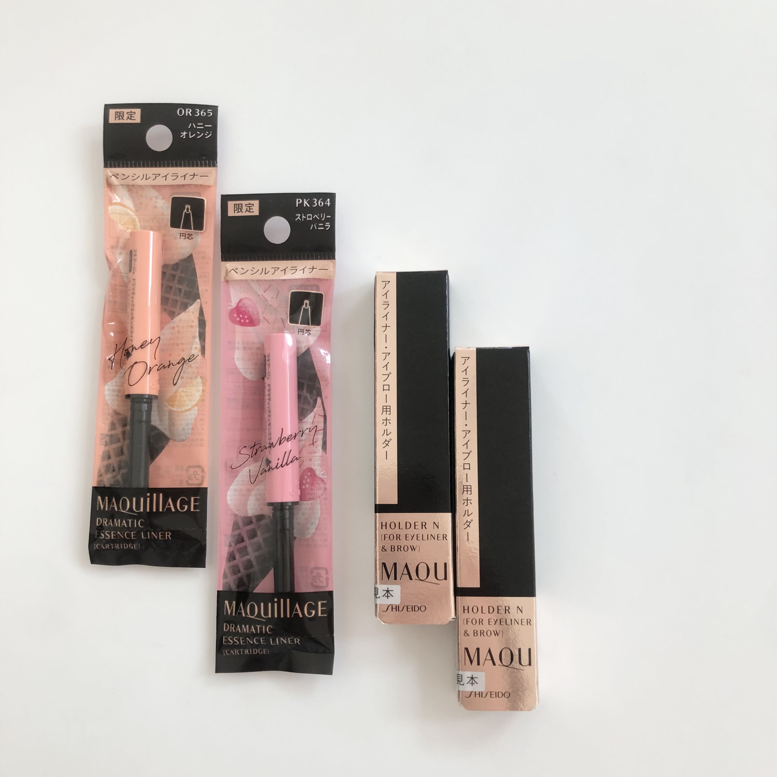 .マキアージュさまからいただきました✔️ドラマティックエッセンスライナー\ジェラートカラーの限定色/ハニーオレンジとストロベリーバニラ🫶🏻肌どけプルーフ処方でするする描けてマルチプルーフ効果で汗•水•皮脂に強い絶妙なカラーで派手すぎずかわいい...