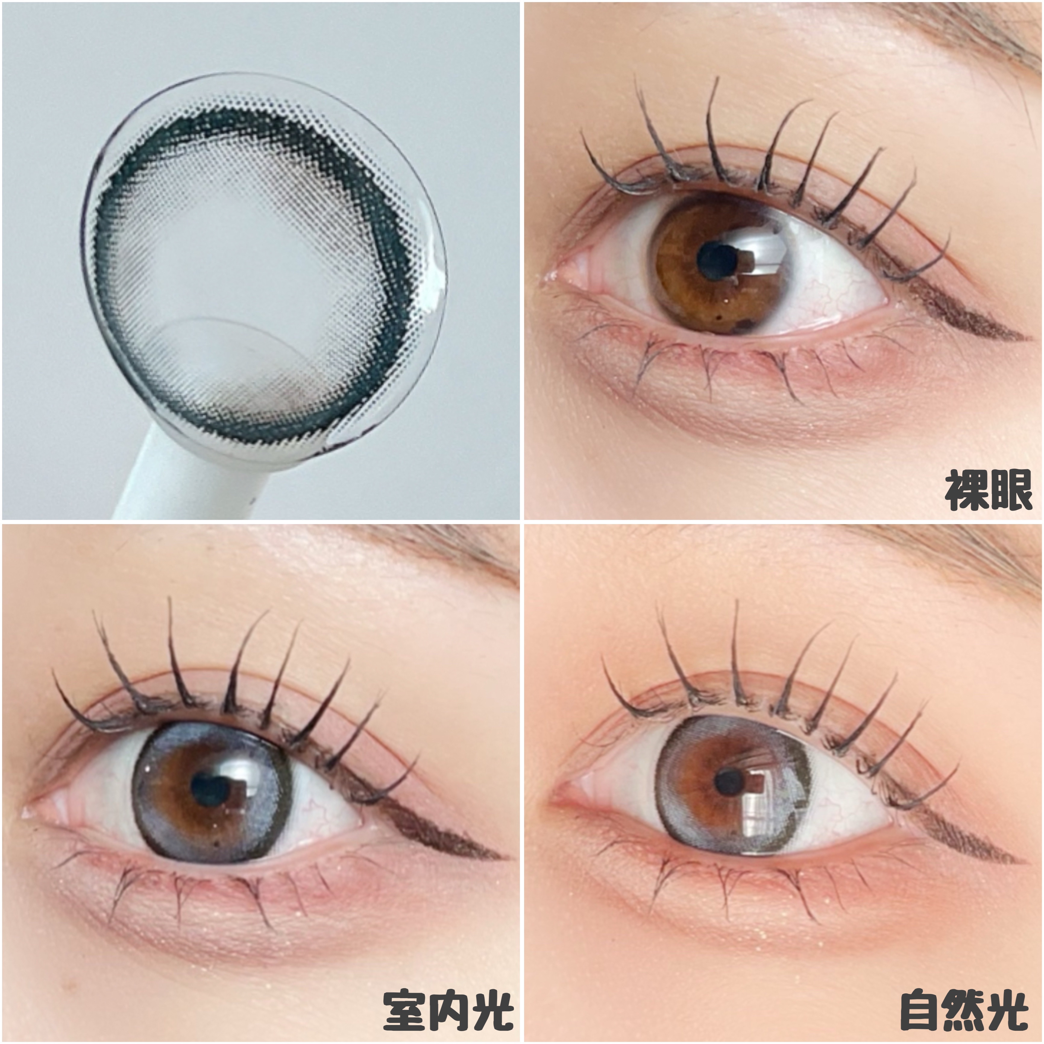 キラキラ水光カラコン♡ フチがしっかりあってデカ目効果も。 グレー系のカラコンって強めに見えて避けちゃう人も多いみたいだけど、これはちゅるんと透明感あるしドーリーメイクにもぴったり♡ 水光カラコンの良さもありつつ、回転しても変な風にならないの天才。