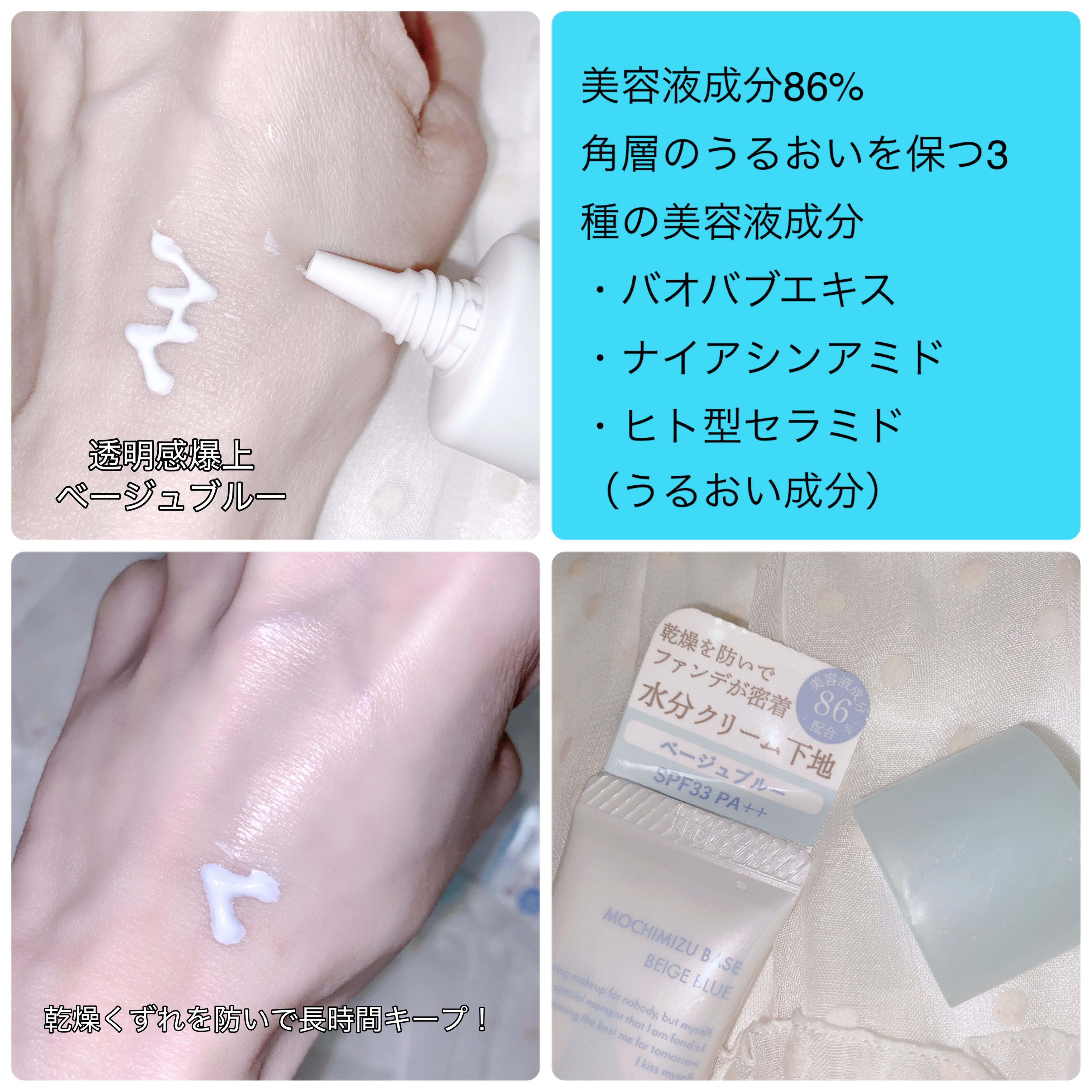 まじで“もちみず”🚰 使ったらわかると思う🥹 みずみずしく保湿感たっぷりで、もちっとした仕上がり。 ベージュブルーなので、青が強すぎて白浮きしたりすることなく、ほんのりトーンアップしてくれます!