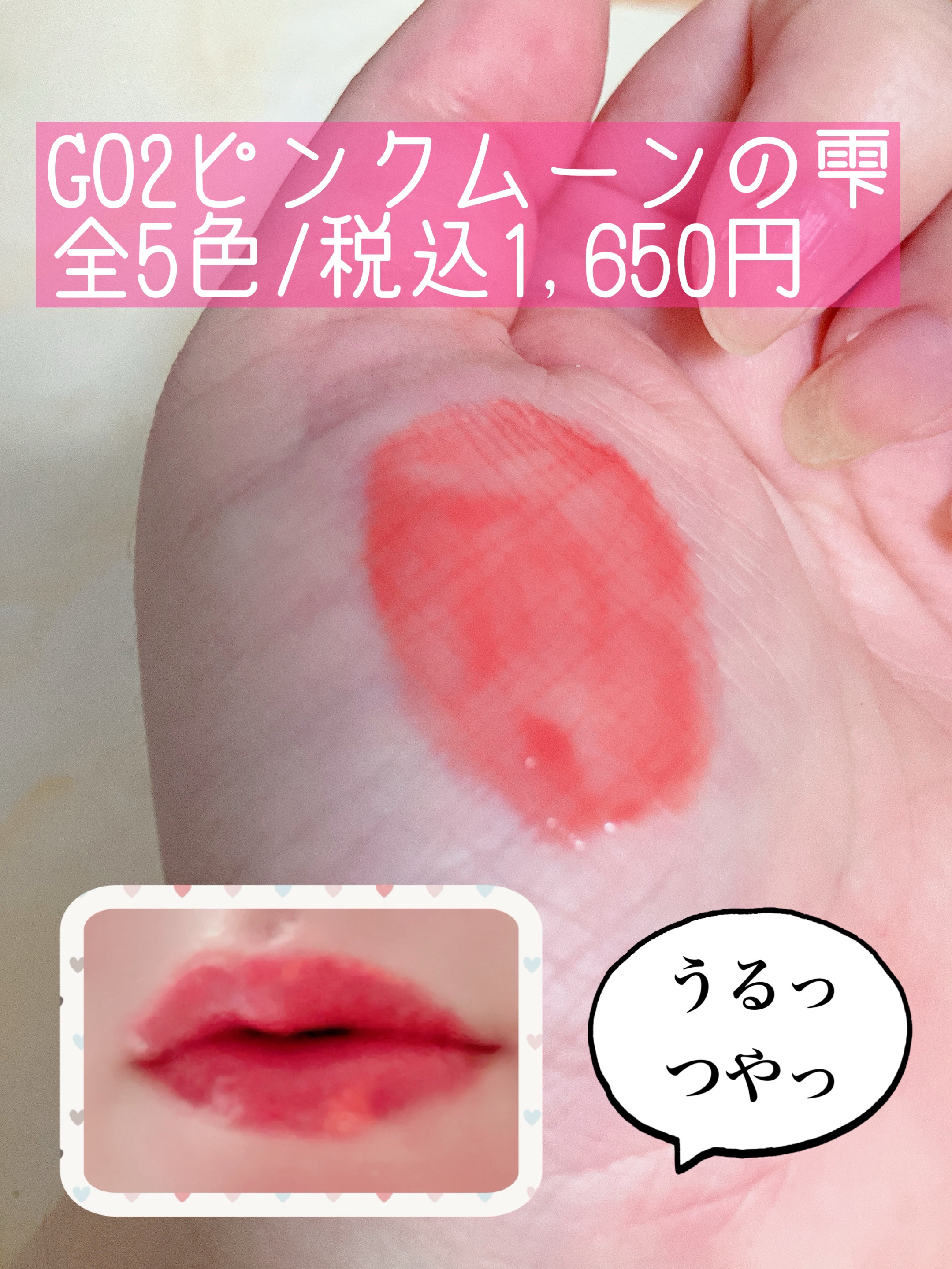 リップモンスターツヤバースG02ピンクムーンの雫今さらですが購入!ツヤ感、とろける質感、肌をぱっと明るく見せてくれるカラー、すべて思っていたよりとてもいい!!!これは明るさ得意な方、ぴったりでは😳サマーさんでも子供顔の方ならとっても使いやすそ...