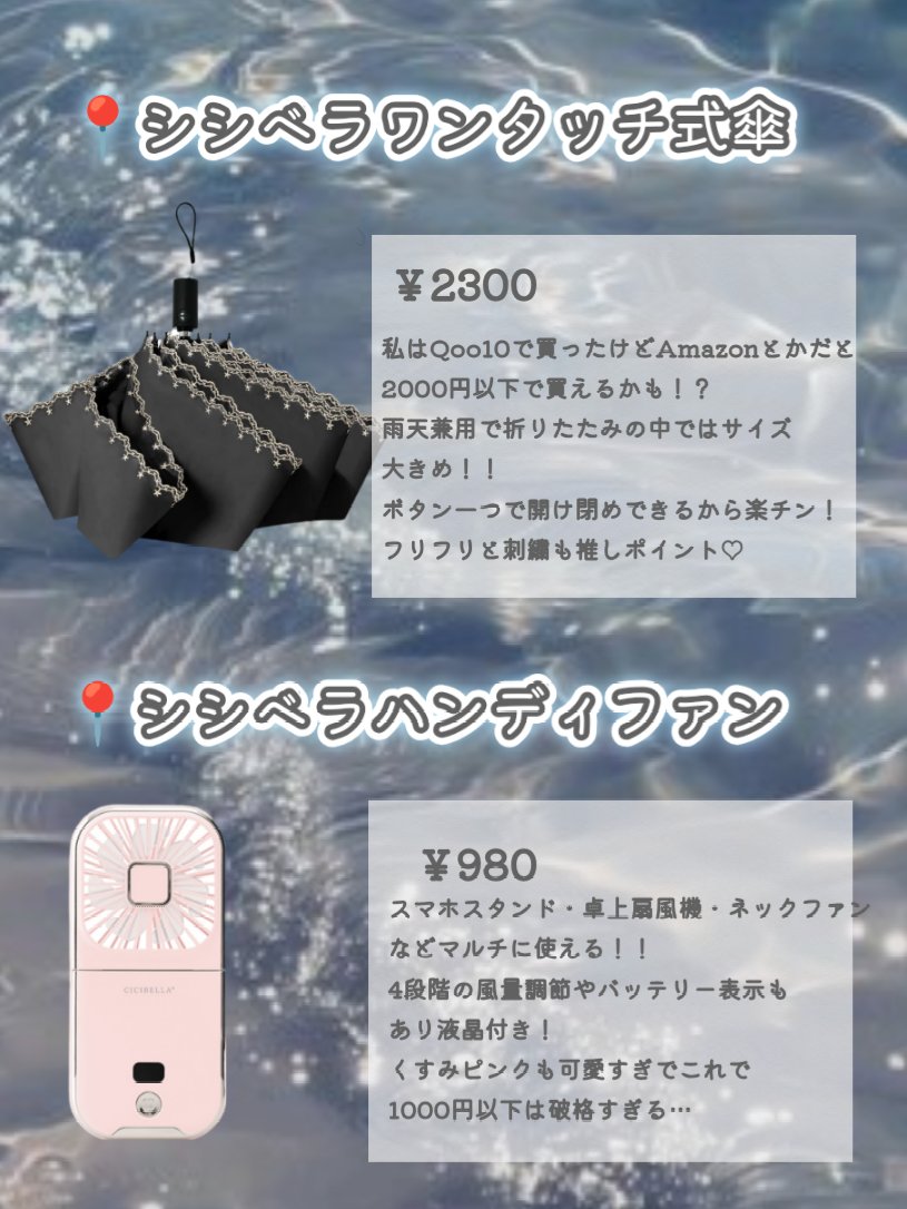 \夏までに揃えたい/最強アイテム6選all2500円以下こんにちは!YOUです🎀❣️最近めちゃめちゃ暑い😵今回は夏に大活躍間違いなしの激推しアイテムをご紹介します!!皆さんのおすすめもおしえてくれたらうれしいです🙌私が買ったときの値段なので多少値段に誤差がありますご了承ください🙇🙇#ビオレ#冷シートももせっけんの香り#Coolist#アセダレーヌアクアシャンプー#メリット#メリットドライシャンプースプレー#リーゼ#前髪リセットパウダー#CICIBELLA#ハンディファン#ドラコスこれ買って#夏アイテム