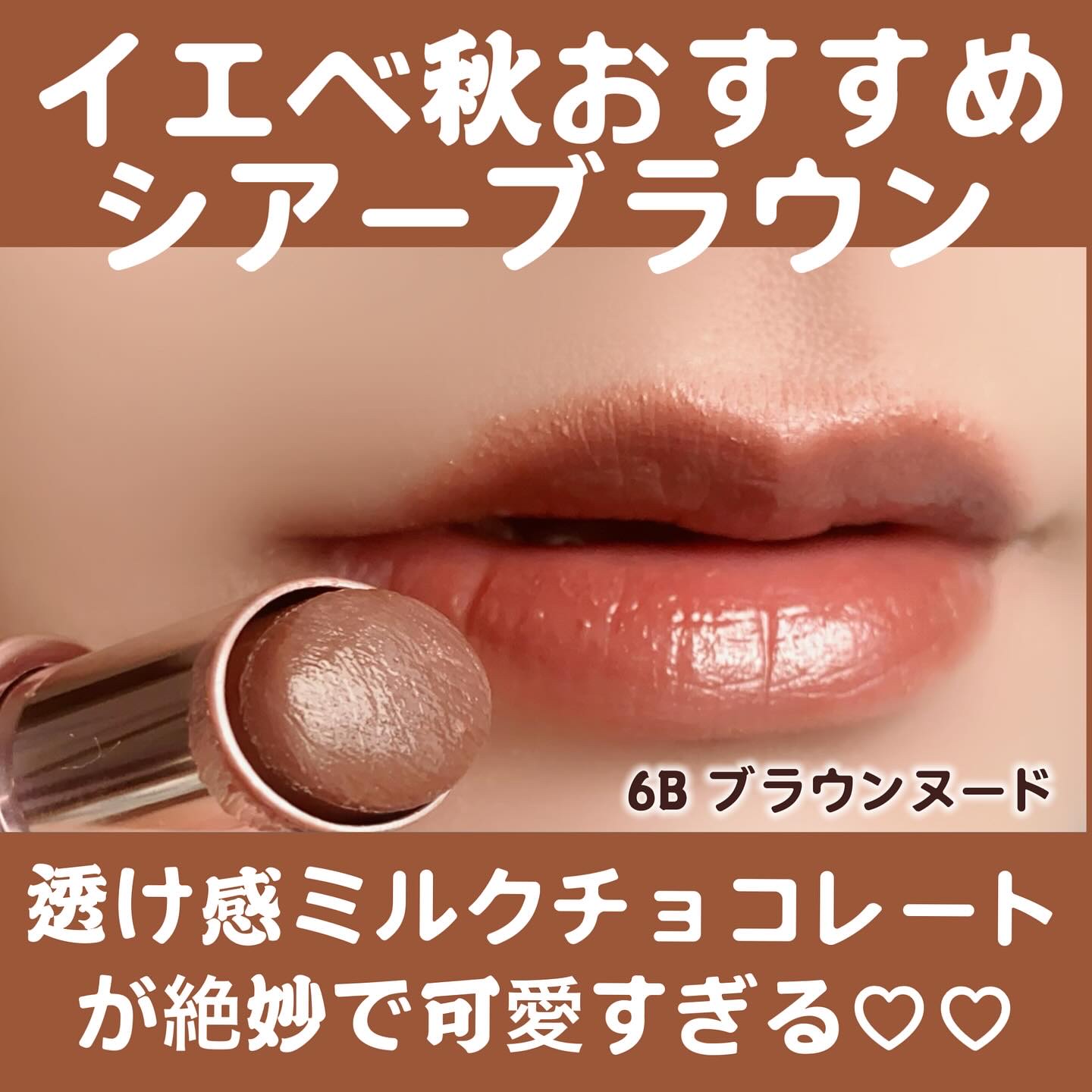 もーちょー可愛い! 肉眼だともう少し赤みがあるヌードブラウン。 ・今っぽお洒落 ・秋コスメに合わせるなら断然6Bがいい気する! 保湿力エグいwww すっごい!むっちり肉厚になれる👍🏻💕´-