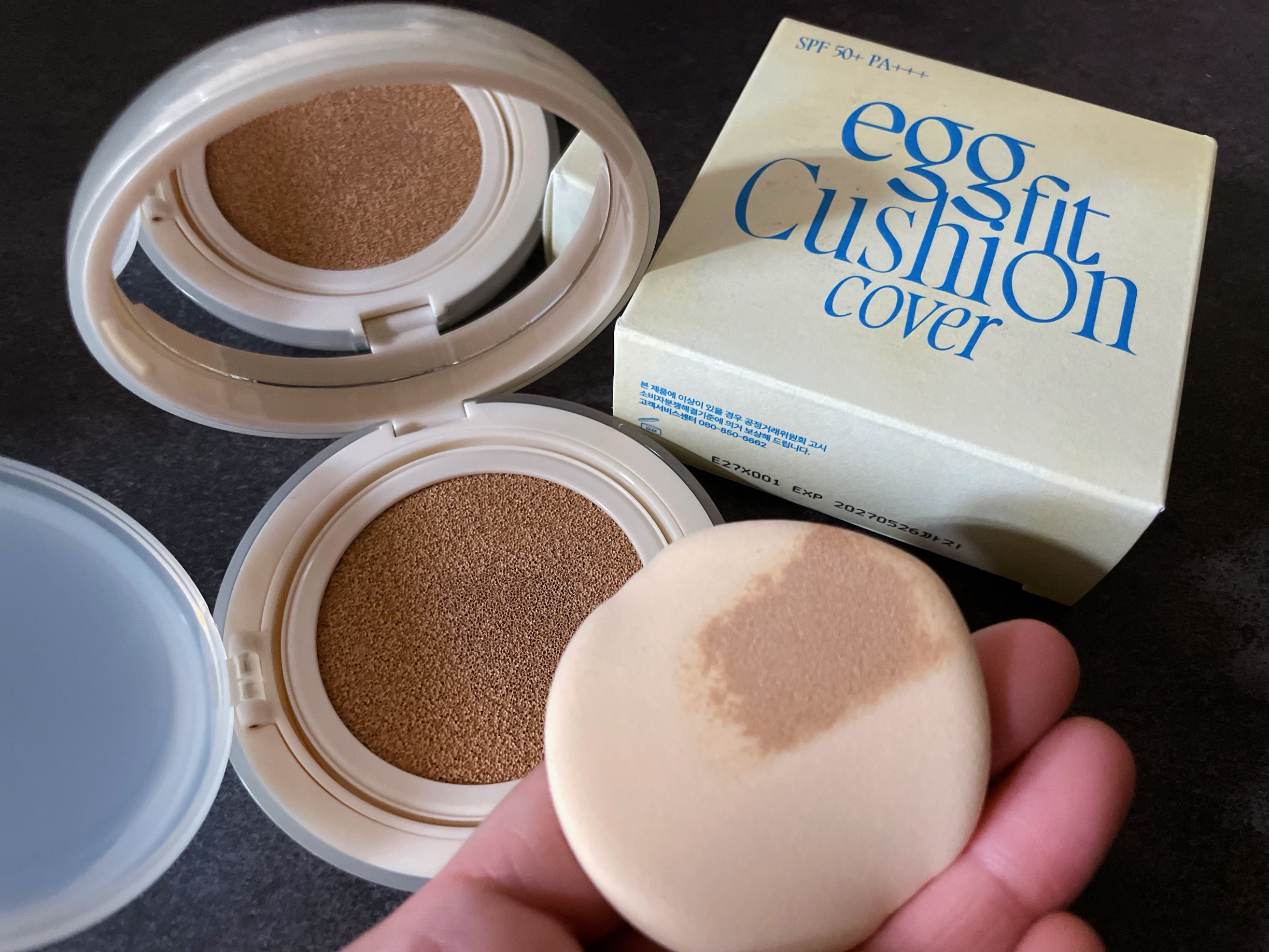 fwee【クッションエッグフィットカバー】セミマットで艶も出るタイプのクッションファンデです。スキンケア用品によって、崩れやすいように感じました。マスクで擦れてポロポロ出る日も。でも、シミ、毛穴のカバー力は抜群です。個人的にパフが塗りやすくて好みでした◎色は03のナチュラルを使用しましたがちょっと黄色っぽいように感じます。私の肌の色と変わらなくてピッタリな色🩷
