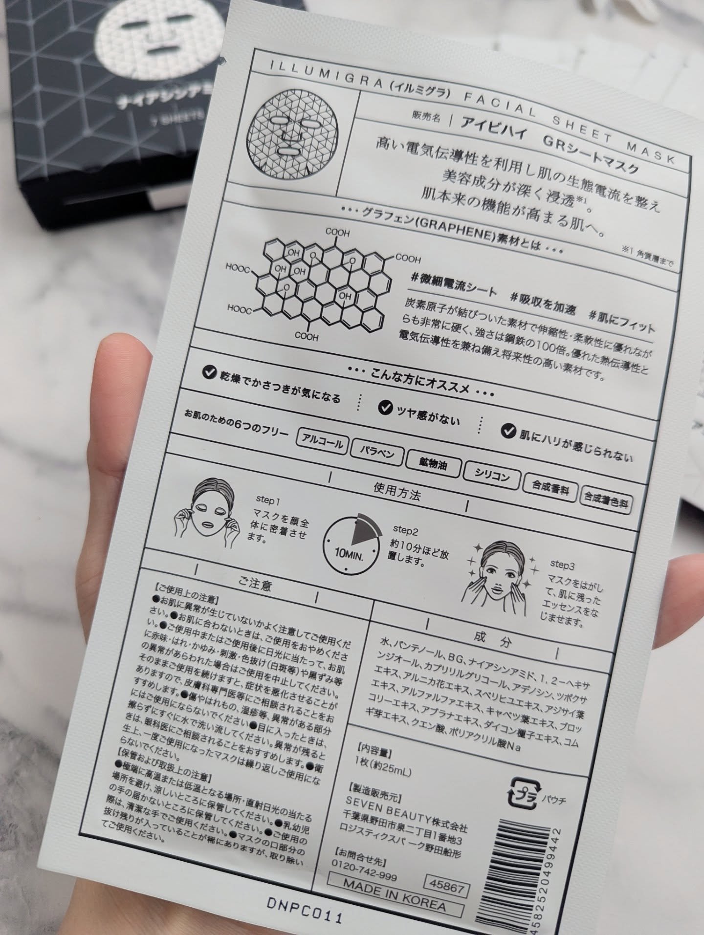 IVIHI様から頂きました\まるで美顔器!?美肌電流マスク/アイビハイイルミグラフェイシャルシートマスクノーベル物理学賞を受賞した奇跡の素材グラフェンシートを使ったシートマスク🖤グラファイト(黒鉛)の単層に相当し炭素原子がハニカム構造を形成す...
