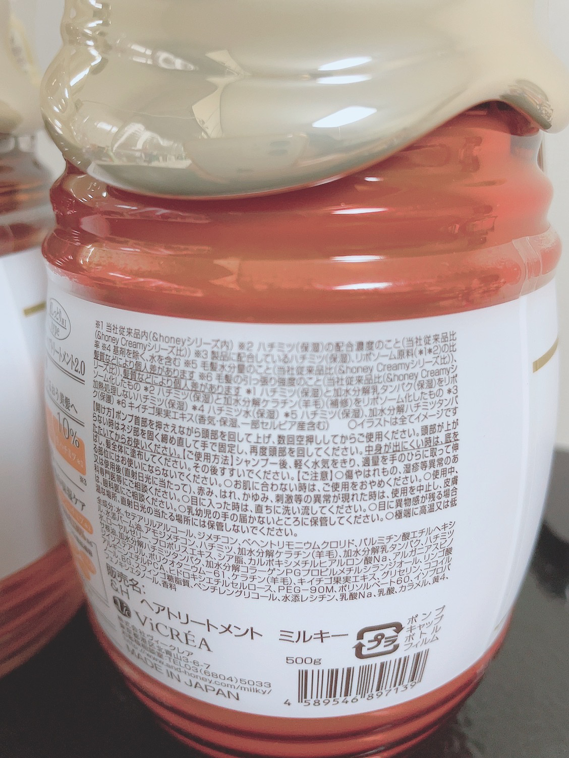 ミルクハニーが45% ケラチンハニーが45% Rawハニーが5%で保湿成分がたっぷりです 熱、摩擦、紫外線、ヘアカラー、乾燥の5つの髪ダメージを徹底補修してくれます 次の日の仕上がりがサラサラでお直しなしでした