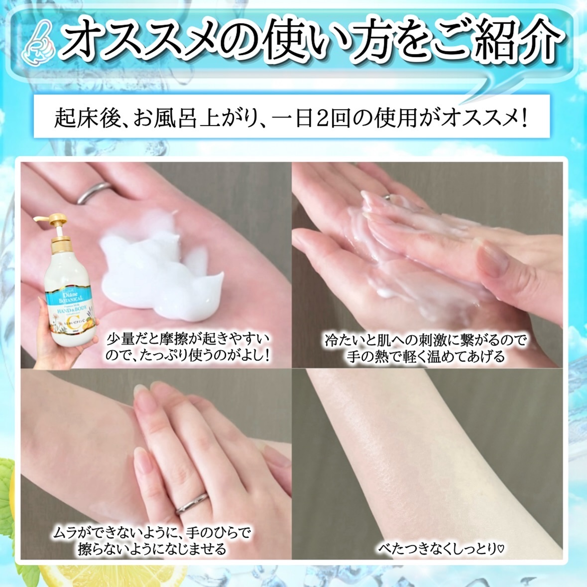 コスパ+機能性よすぎる DianeBOTANICAL(ダイアンボタニカル)のハンド&ボディミルクがめっちゃ便利! うるおいビタミンC成分配合で乾燥しがちなお肌を保湿し、明るく透明感のあるみずみずしい肌印象へと導いてくれる☀️ 90%以上が天然由来成分!敏感肌でも使いやすい処方だからひとつ置いておけば家族みんな使える🙆🏻♀️