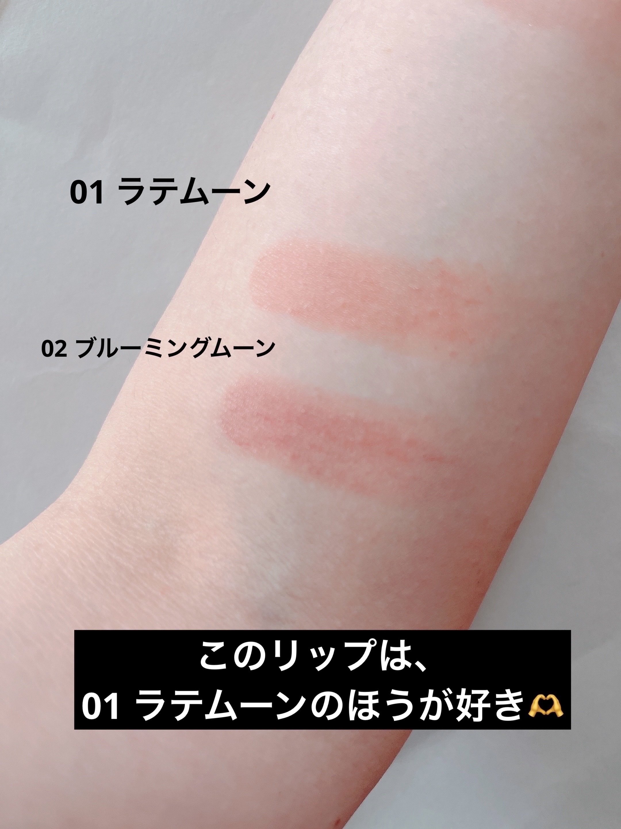 滑らかな塗り心地でスルスルと塗れる🥰 定番4色は粘膜カラー展開で 02ブルーミングムーンは赤みを抑えた粘膜ピンクベージュ❣️ 高発色が好きな方はテスター試してみた方が良いと思いました❣️