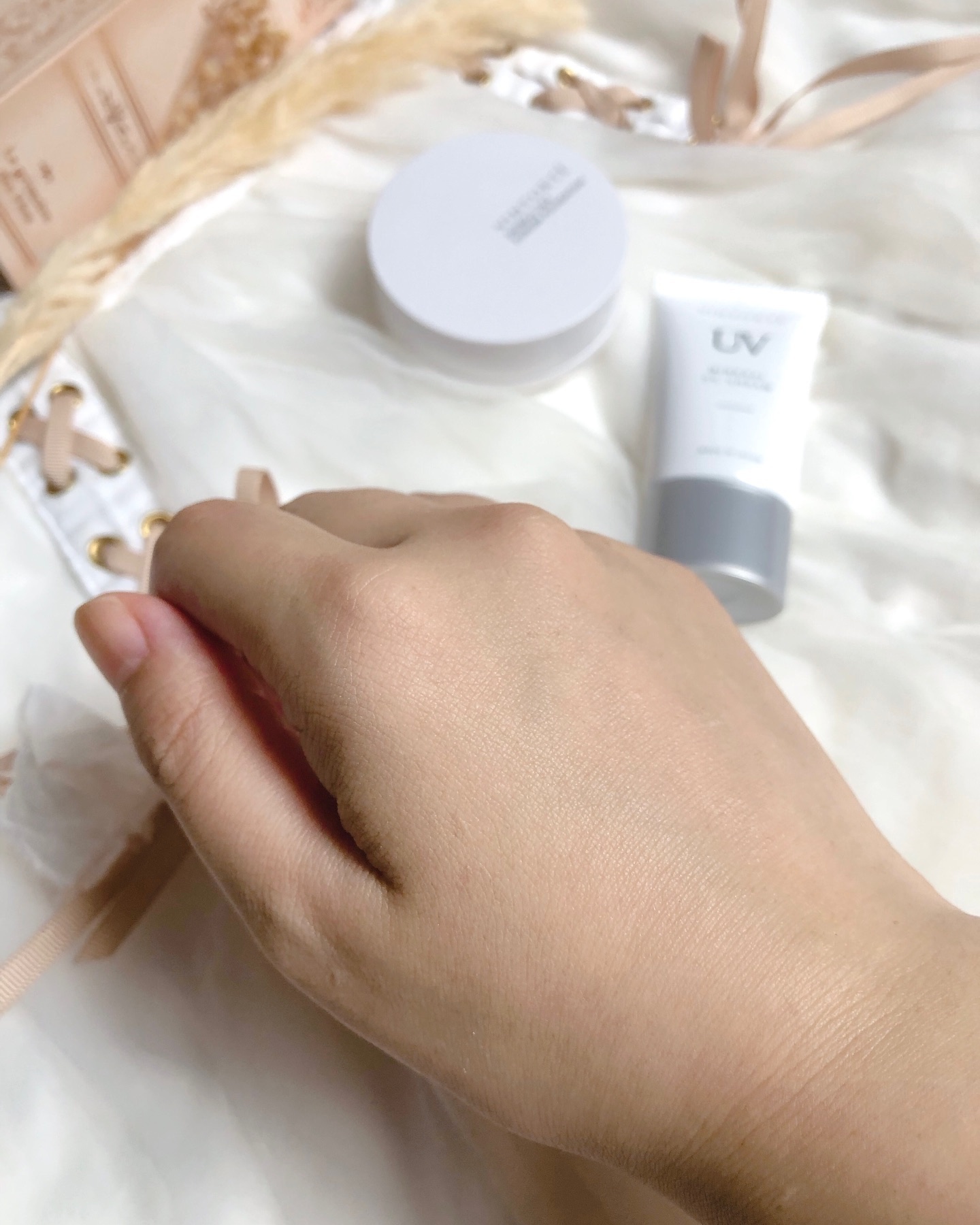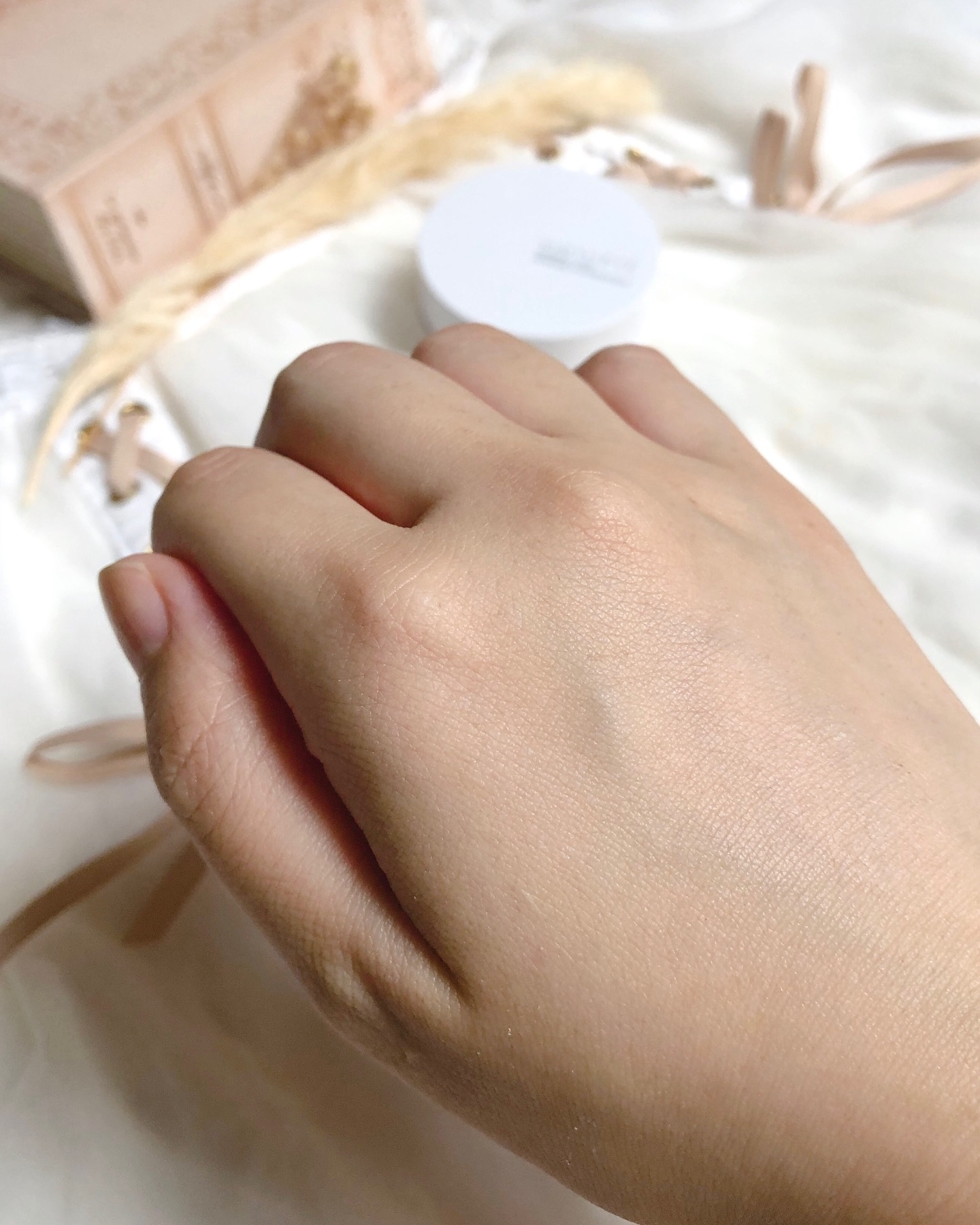軽いつけ心地で毛穴、くすみ、テカリをカバーしてくれるそう 粉がかなり細かいので粉っぽくならずに綺麗に肌にのる感じ しっとりとするような使用感 ふわっとフィルターをかけたような仕上がりになれるような気がしました 嬉しいのはクレンジング不要でOKなところ 石けんとぬるま湯でラクにオフできる