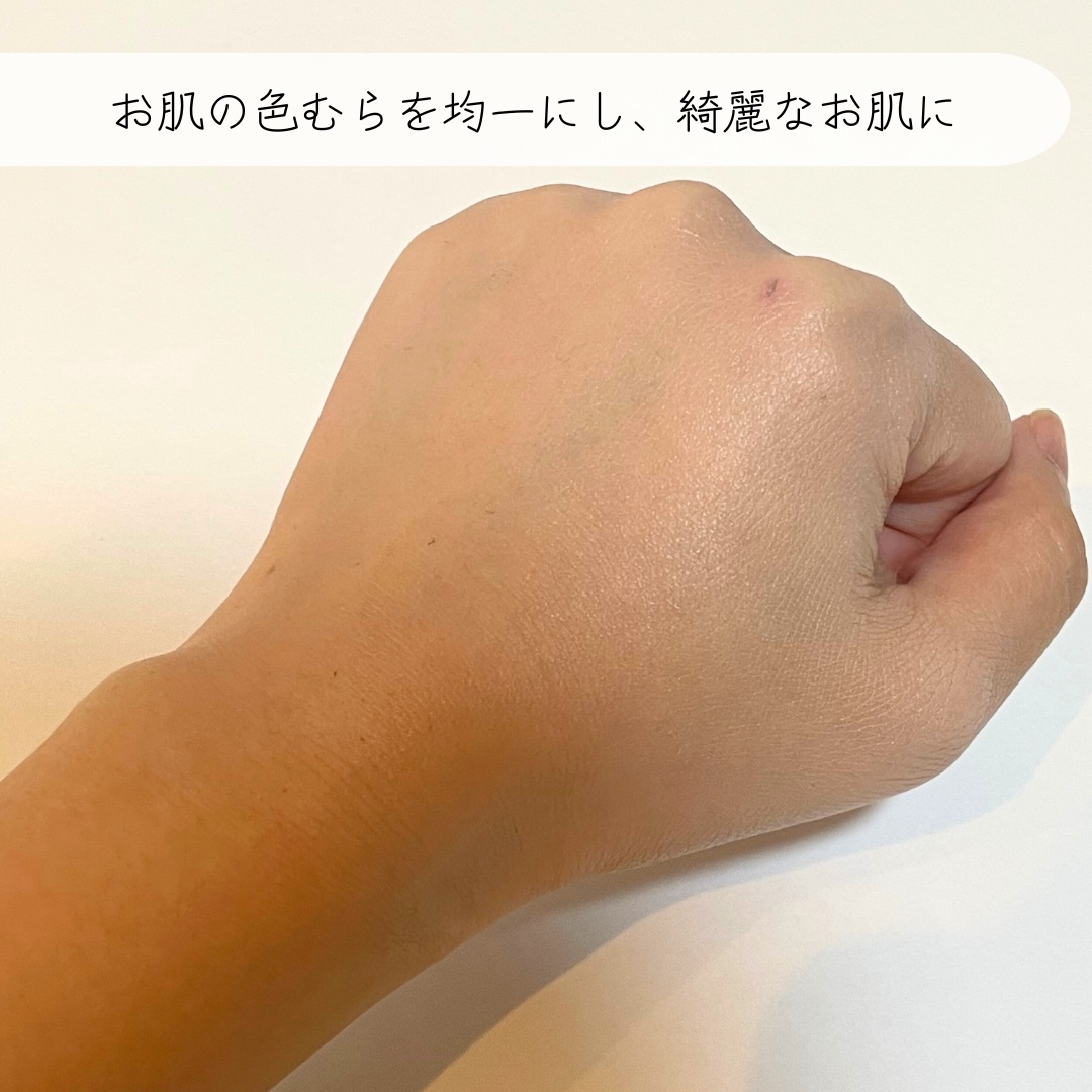色むらを補正し、お人形さんのような、綺麗なお肌に見せてくれます。 みずみずしくてセラムのような使用感で使いやすいですよ。 このUVとパウダーだけで綺麗に仕上がるので、時短でメイクが完成します。 カバー力を求める方も、自然なツヤ感を求める方にもおすすめできるUVです!