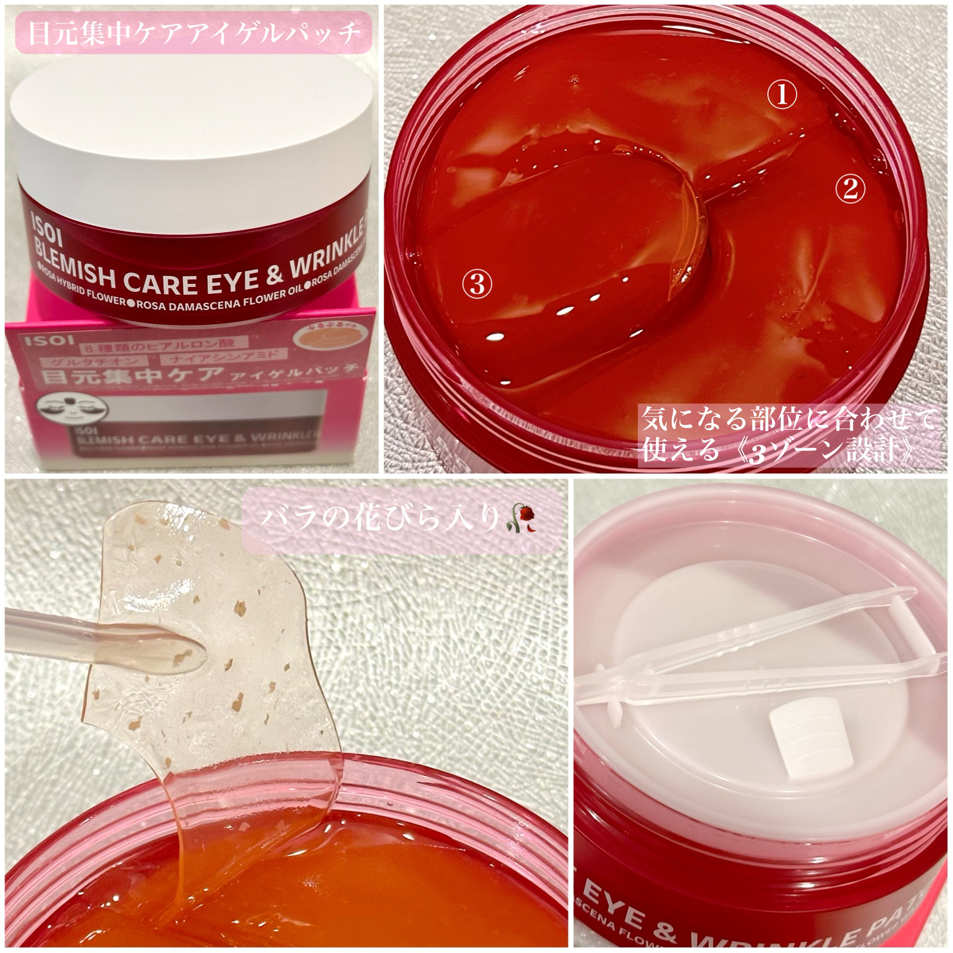 #PRISOI・ブライトニングセラム・目元集中ケアアイゲルパッチ・ブレミッシュケアマスク____🌹.セラム韓国オリーブヤングのセラム部門で、12年間1位*¹を獲得した「くすみ※1ローズセラム」がローズPDRNなどの保湿成分を加えて「ツヤ玉ローズPDRNセラム」としてリニューアル🌟3000本のバラからわずか1gしか抽出できないといわれる、希少なブルガリアンローズオットーオイルを配合🌹ローズ由来の植物性ローズPDRN*²や保湿成分などを組み合わせたセラムです✨とろみのあるテクスチャーで、肌になじませると軽やかな使い心地☺️オイル配合ながらもべたつきにくくさらっとした仕上がりが印象的でした◎蓋を開けるとローズの香りがふわっと広がりリラックス感のある香りも魅力🌹⋆*____🌹.アイゲルパッチ1日たった3分のケア◎ローズセラムをそのまま固めたプレミアムゲルパッチ🌹⋆*眉間・目元・口元など、気になる部位に合わせて使える3ゾーン設計✨本物のバラの花びら入りで、ふわっと香るローズの香りにも癒されます🥀私は忙しい朝は3分、夜はじっくり20分程おいて使用しています🌙▼こんな方におすすめ☑︎目元の乾燥が気になる方☑︎ハリ不足による印象をケアしたい方☑︎くすみが気になる方(乾燥による)____🌹.シートマスク「ブレミッシュケアアップセラム」のノウハウをそのままシートマスクに◎薄手のシートが肌にフィットし、たっぷりの美容液が角層までうるおいを届けます。はずした後もべたつかず、しっとりした印象◎バラの香りにも癒されました🌹⋆*____ISOIのバラシリーズでライン使いすると、スキンケア時間がちょっと特別に感じられました🌹💖*¹…2012年11月~2024年9月オリーブヤングエッセンス部門累積販売額1位(リニューアル商品含む)*²…ポリデオキシリボヌクレオチド+保湿成分*³…保湿成分※1乾燥による#bibint#ISOI#アイソイ