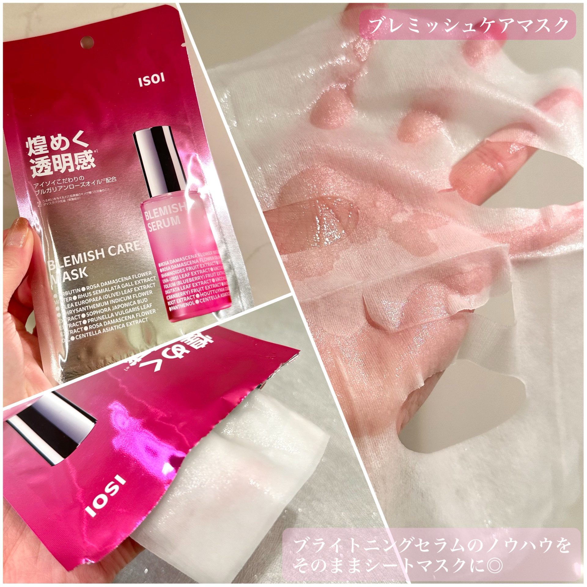 アイソイの代表アイテム ブレミッシュケアセラムのノウハウをそのまま! 贅沢するぎるマスクだね💓 くすんだ(乾燥による)肌をクリアにトーンアップ! マスク取ったあと保湿感 私は実感しまくりで肌も明るくなった気がしてリピしたいなって思った😊